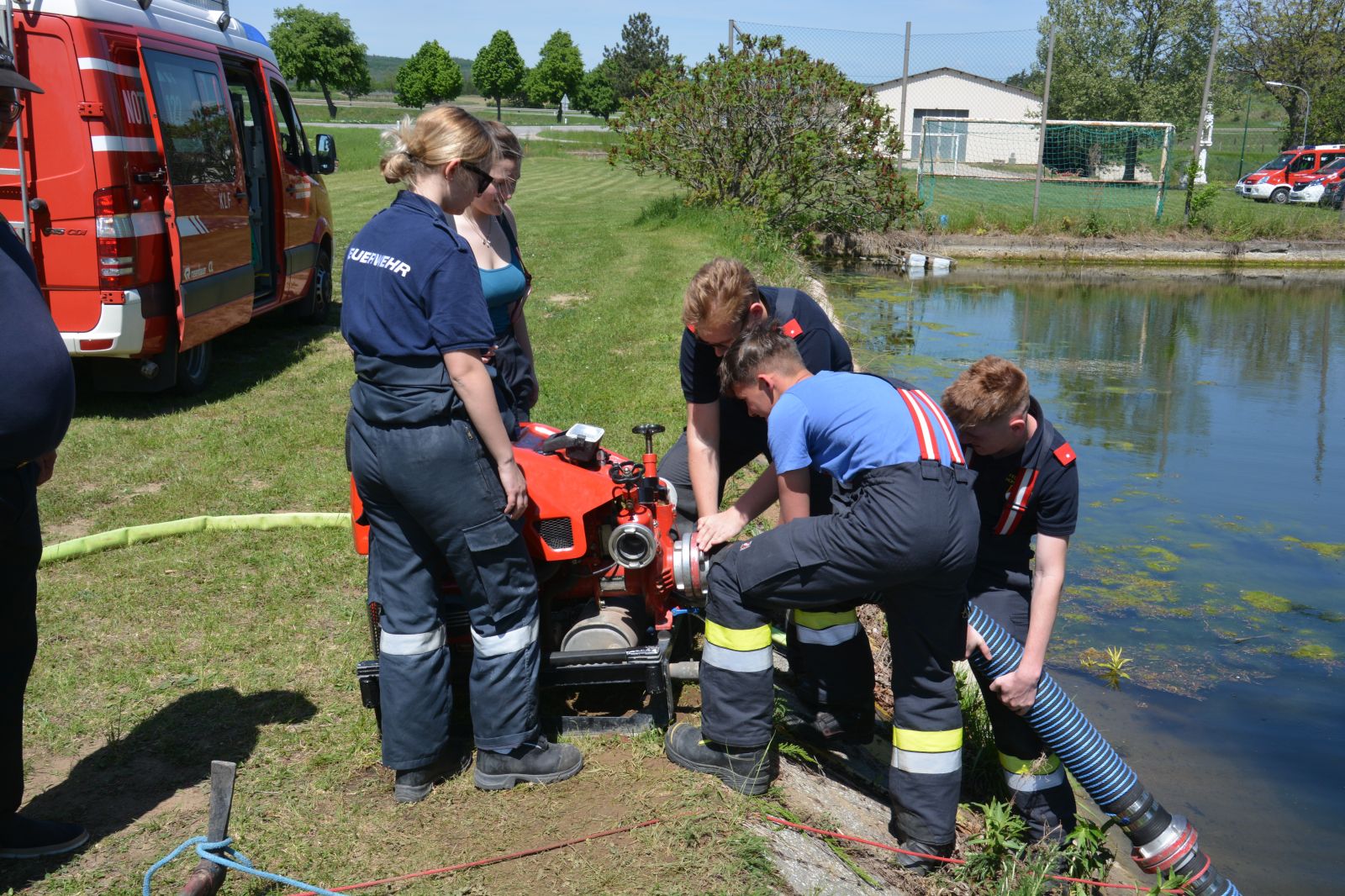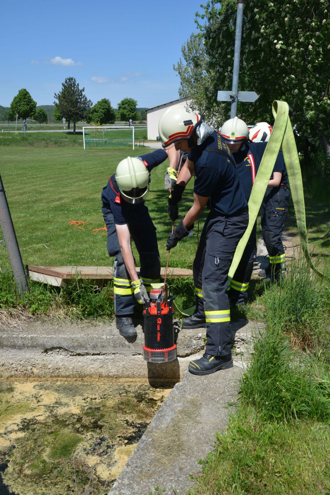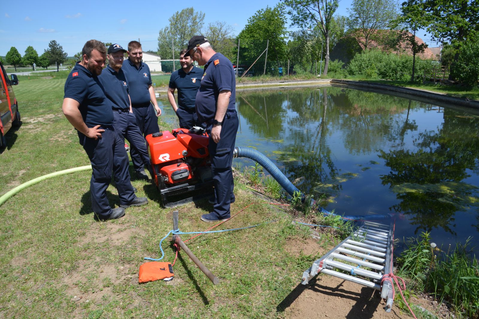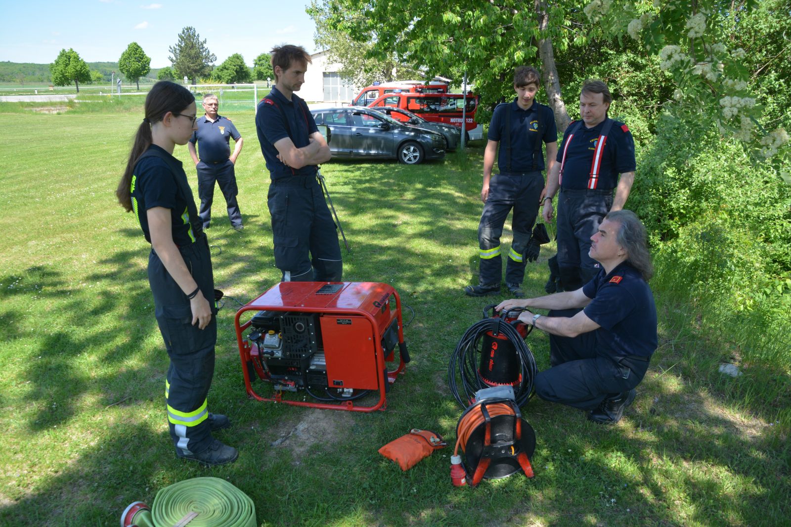 Die Teilnehmer konnten das Gelernte auch gleich praktisch umsetzen und selbst die verschiedensten Geräte, wie Tragkraftspritze, Unterwasserpumpe, Generator, Einbaupumpe und zahlreiche andere bedienen.