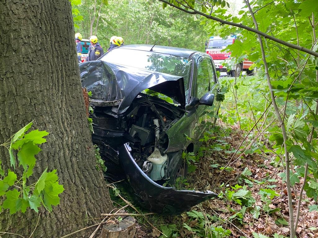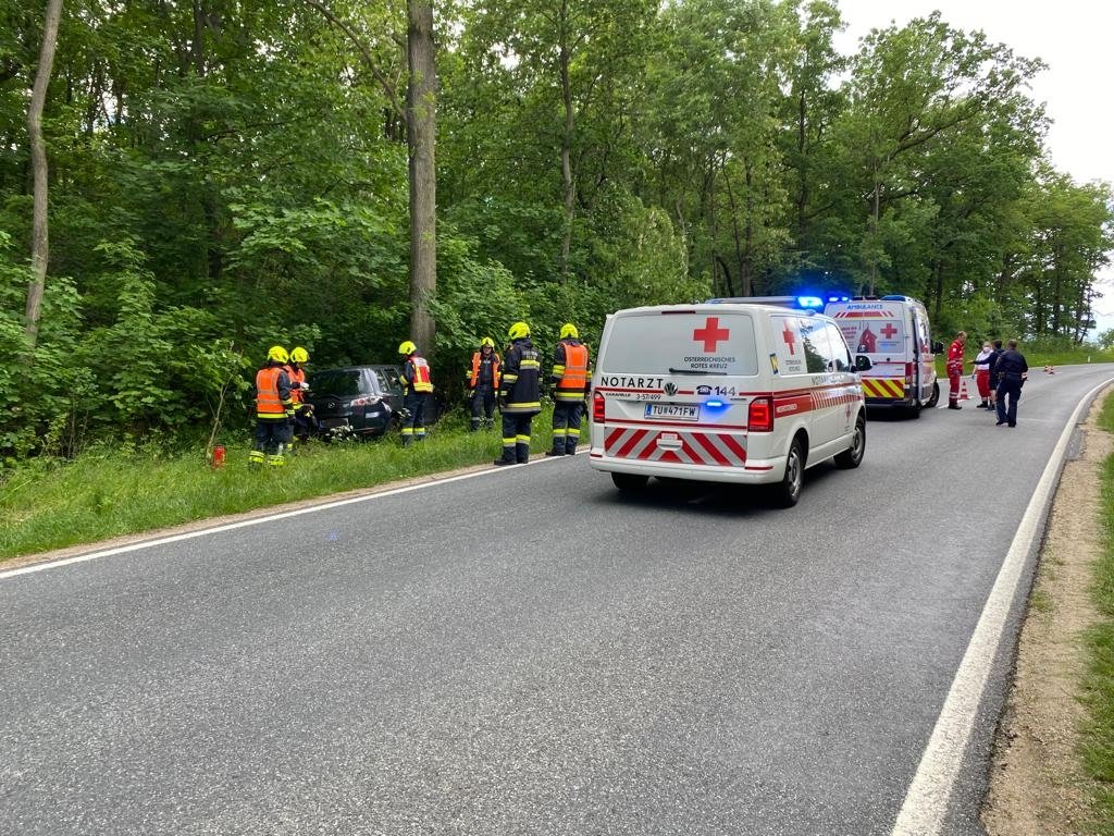 Ein PKW kam von der Straße ab und rammte einen Baum. Die PKW-Lenkerin konnte das Unfallfahrzeug eigenständig verlassen wurde jedoch unbestimmten Grades verletzt und durch Ersthelfer versorgt.
