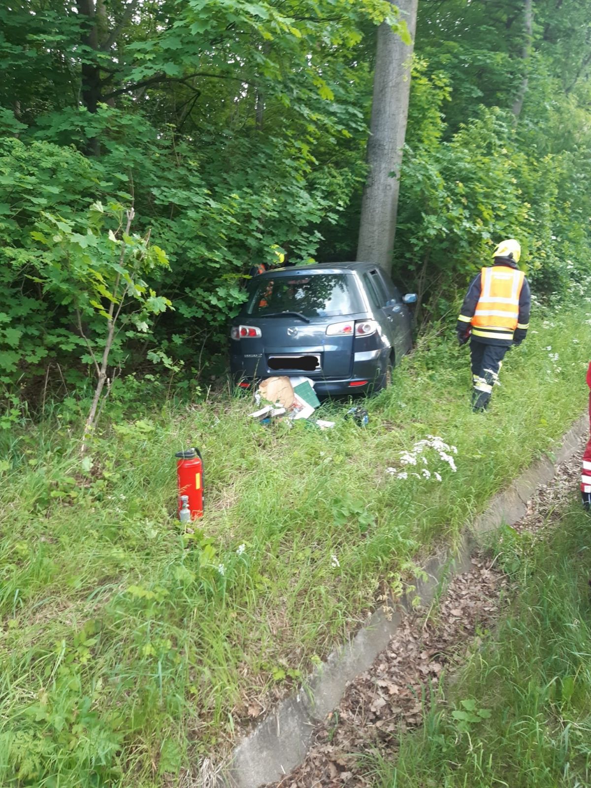 Es wurde die Einsatzstelle abgesichert, ein Brandschutz aufgebaut, die KFZ-Batterie abgeklemmt und die verletzte Person bis zur Übergabe an den Rettungsdienst betreut. Die sichergestellte Katze wurde von einer Privatperson zur weiteren Betreuung übernommen. Die Bergung des Unfall-KFZ übernahm ein lokales Bergeunternehmen, welchem während der Bergung assistiert wurde.
