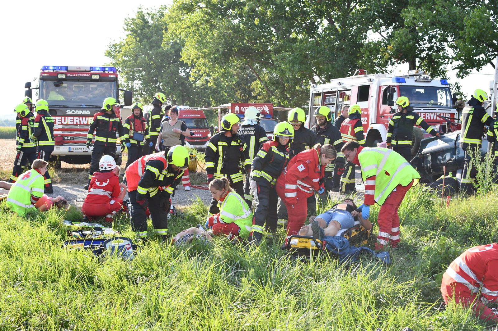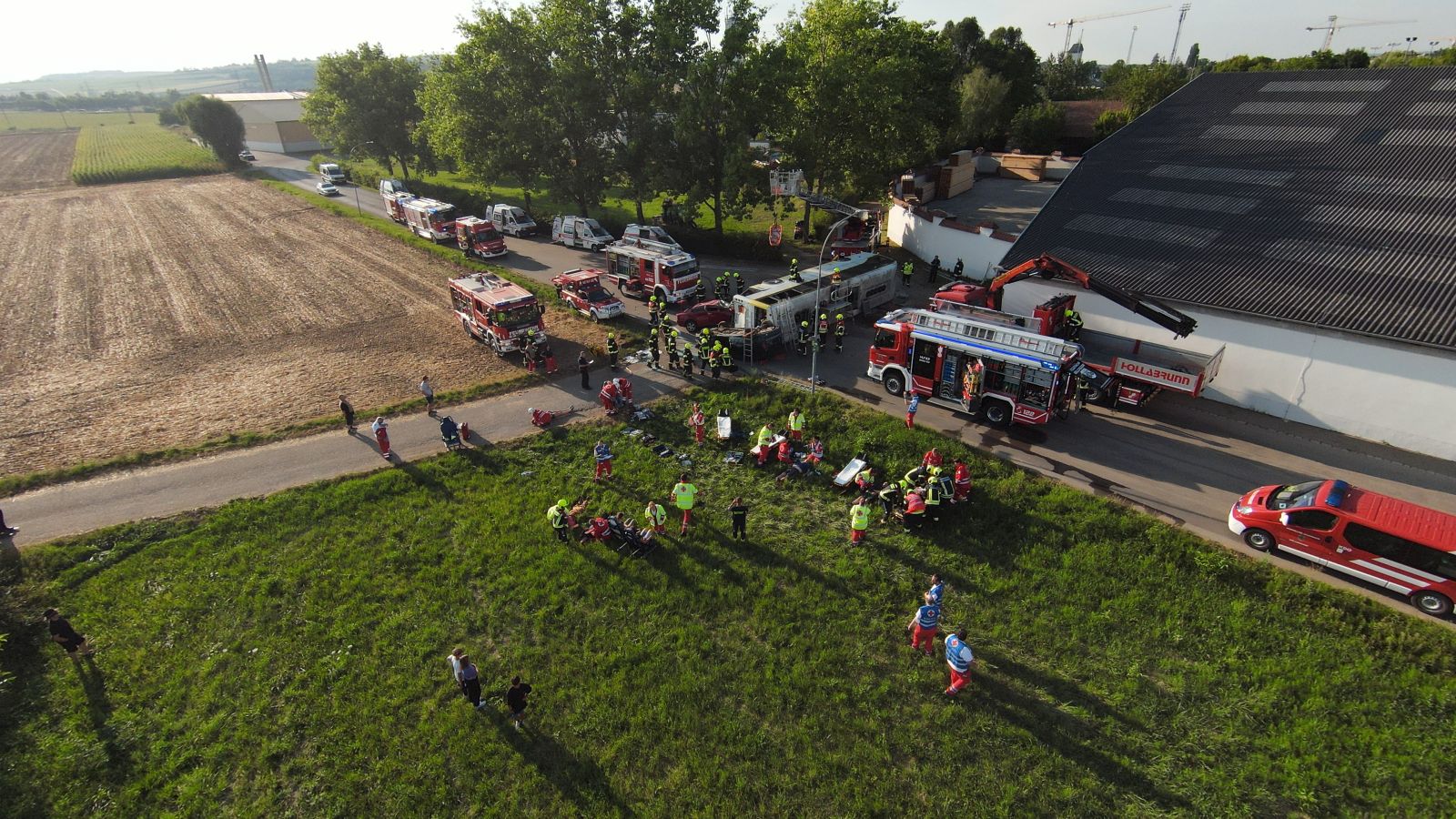 Durch Einsatzleiter HBI Markus Pfeifer wurden die anrückenden Einheiten in Einsatzabschnitte gegliedert. Strukturiert wurden die eingeklemmten PKW-Insassen und die verletzten Personen im Autobus gerettet und zur weiteren Erstversorgung dem Rettungsdienst am „Patientenablageplatz“ übergeben,