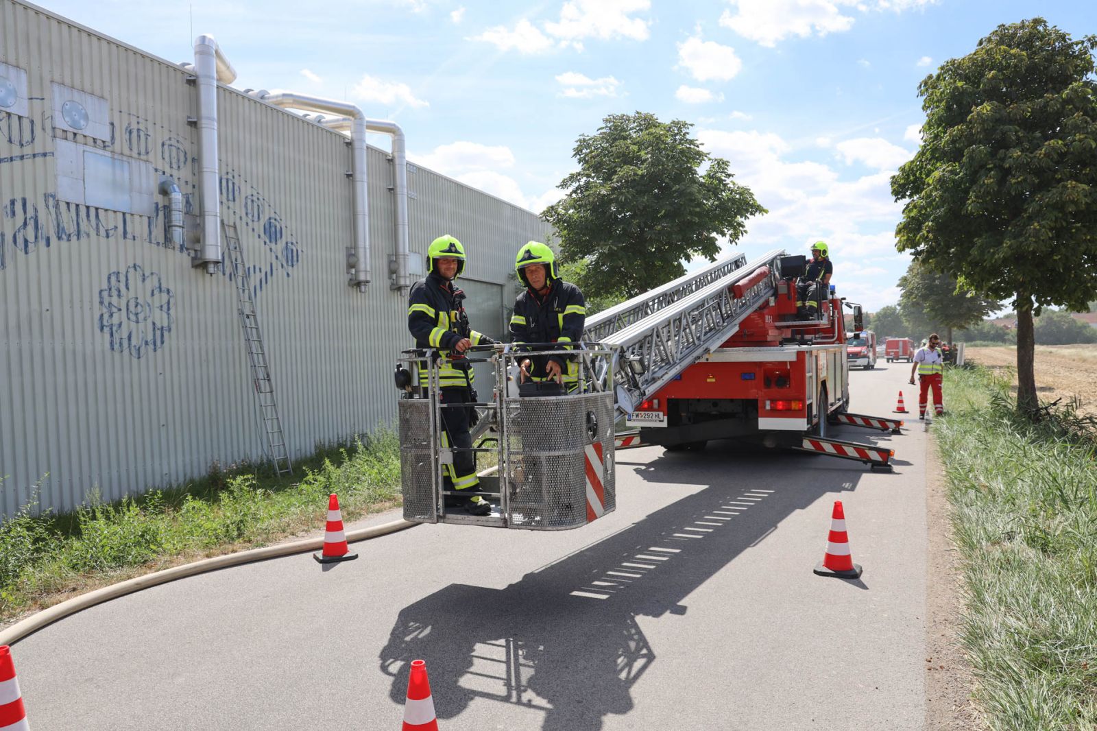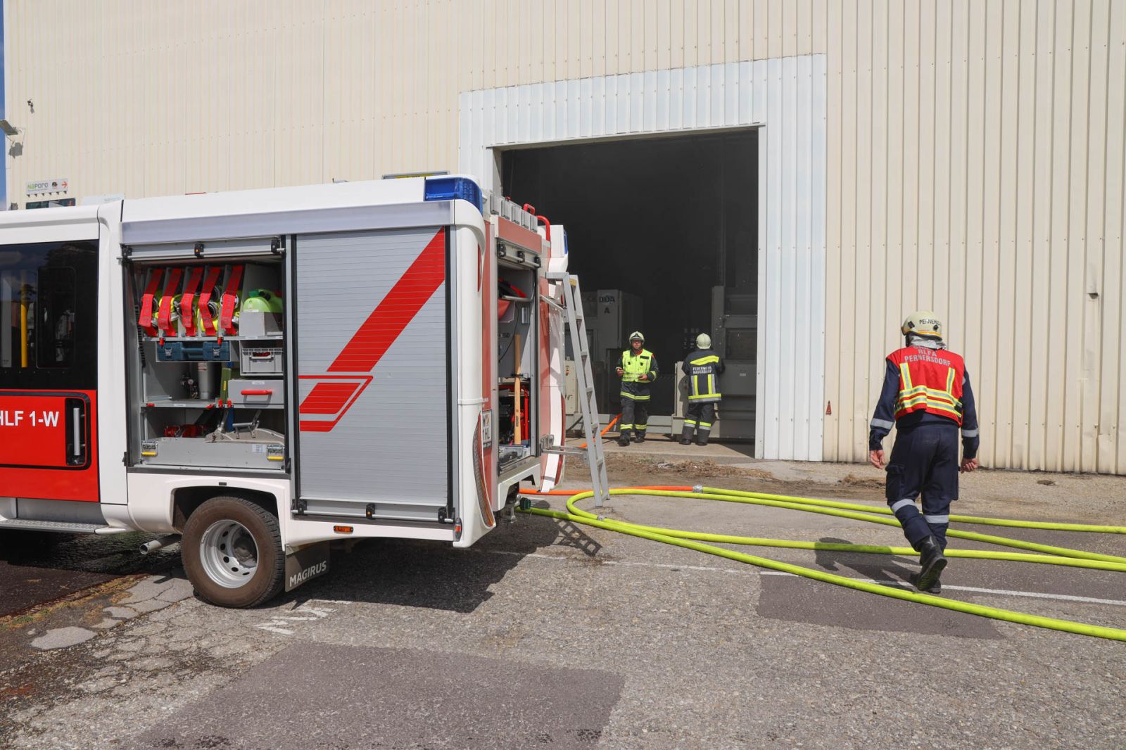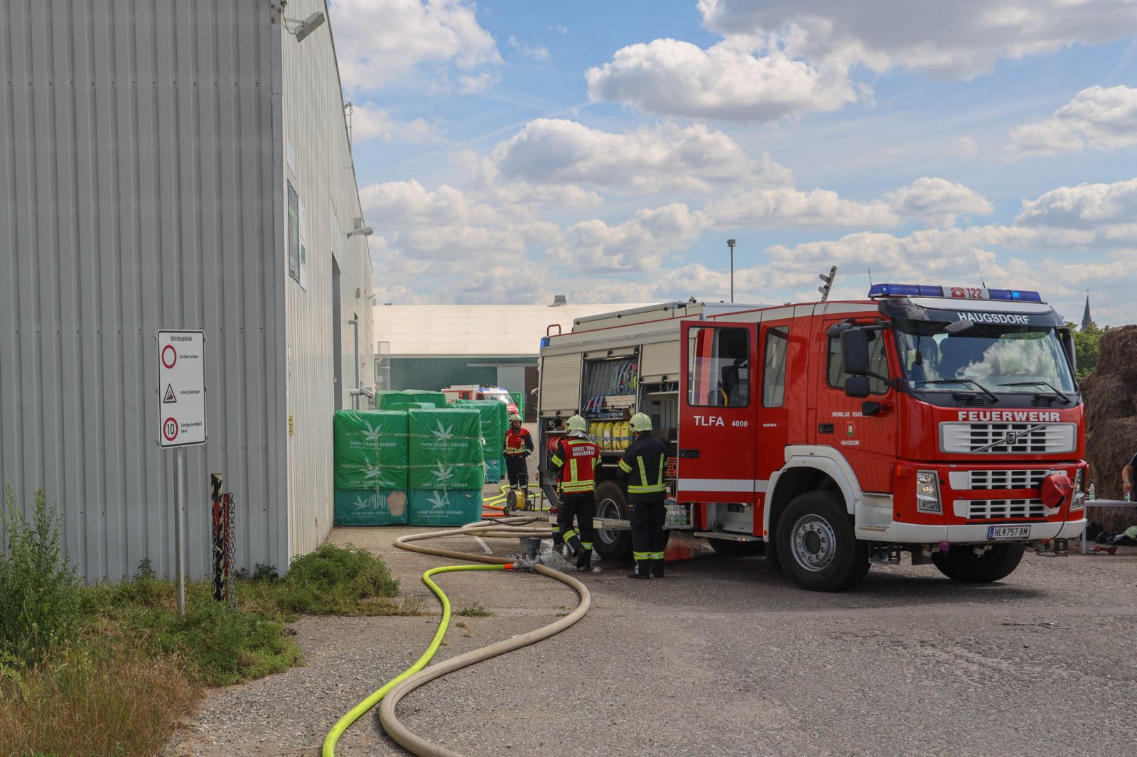 Kurz vor 10:30 löste eine Brandmeldeanlage eines örtlichen Unternehmens in Auggenthal aus. Kurz nach der Alarmierung rückten die Feuerwehren Haugsdorf und Auggenthal zum Einsatzort aus. Bereits bei der Anfahrt zum Feuerwehrhaus sah Einsatzleiter Gerald Promper Rauch aus der Halle aufsteigen und erhöhte deshalb umgehend auf Alarmstufe B2.