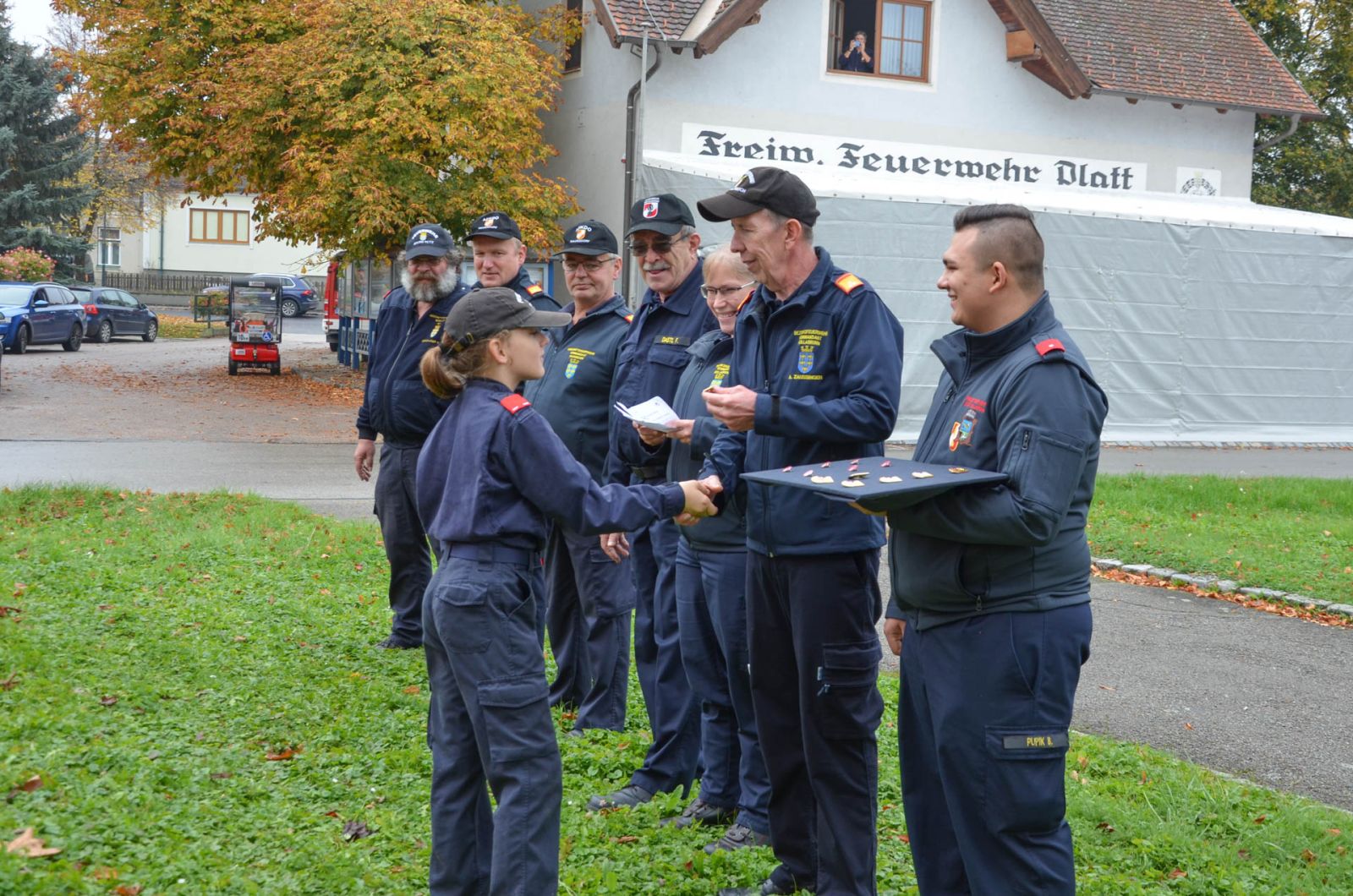 Bezirkssachbearbeiterin für Feuerwehrjugend, Sandra Grafenender, bedankte sich für die gute Zusammenarbeit bei der Feuerwehr Platt und für die gemeinsame Organisation und Durchführung der Erlebniswanderung und des Fertigkeitsabzeichens.