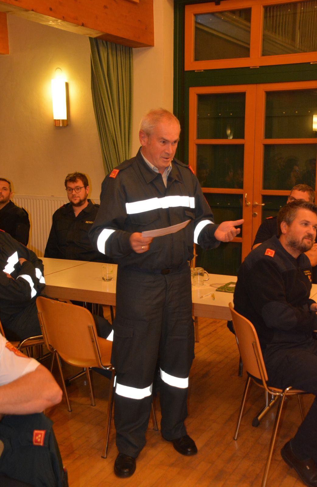 Nach dem Jahresrückblick berichtete der Bezirkskommandant LFR Alois Zaussinger über diverse Feuerwehrthemen vom Landesfeuerwehrverband bzw. aus dem Bezirk, wie das neue Alarmierungssystem ELKOS, Aus-/Fortbildung oder die Lernplakate der Feuerwehrschule, welche jetzt online zu finden sind.