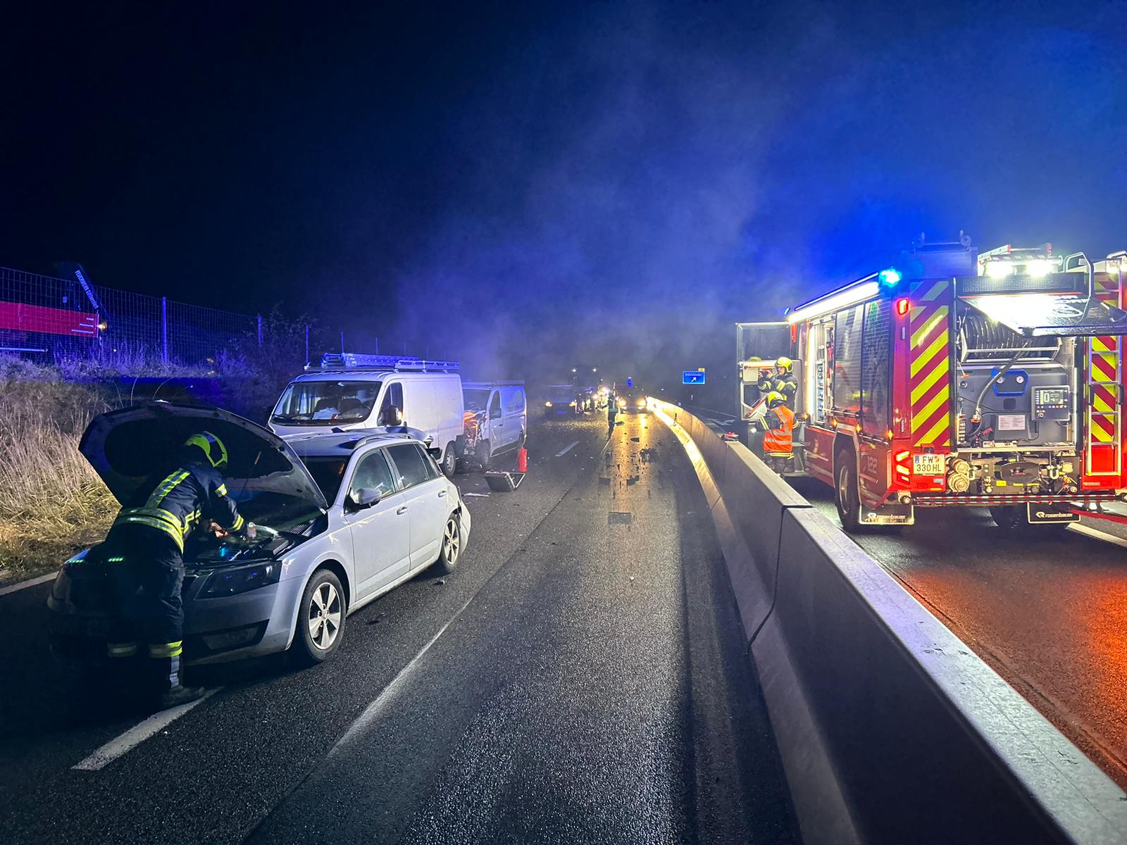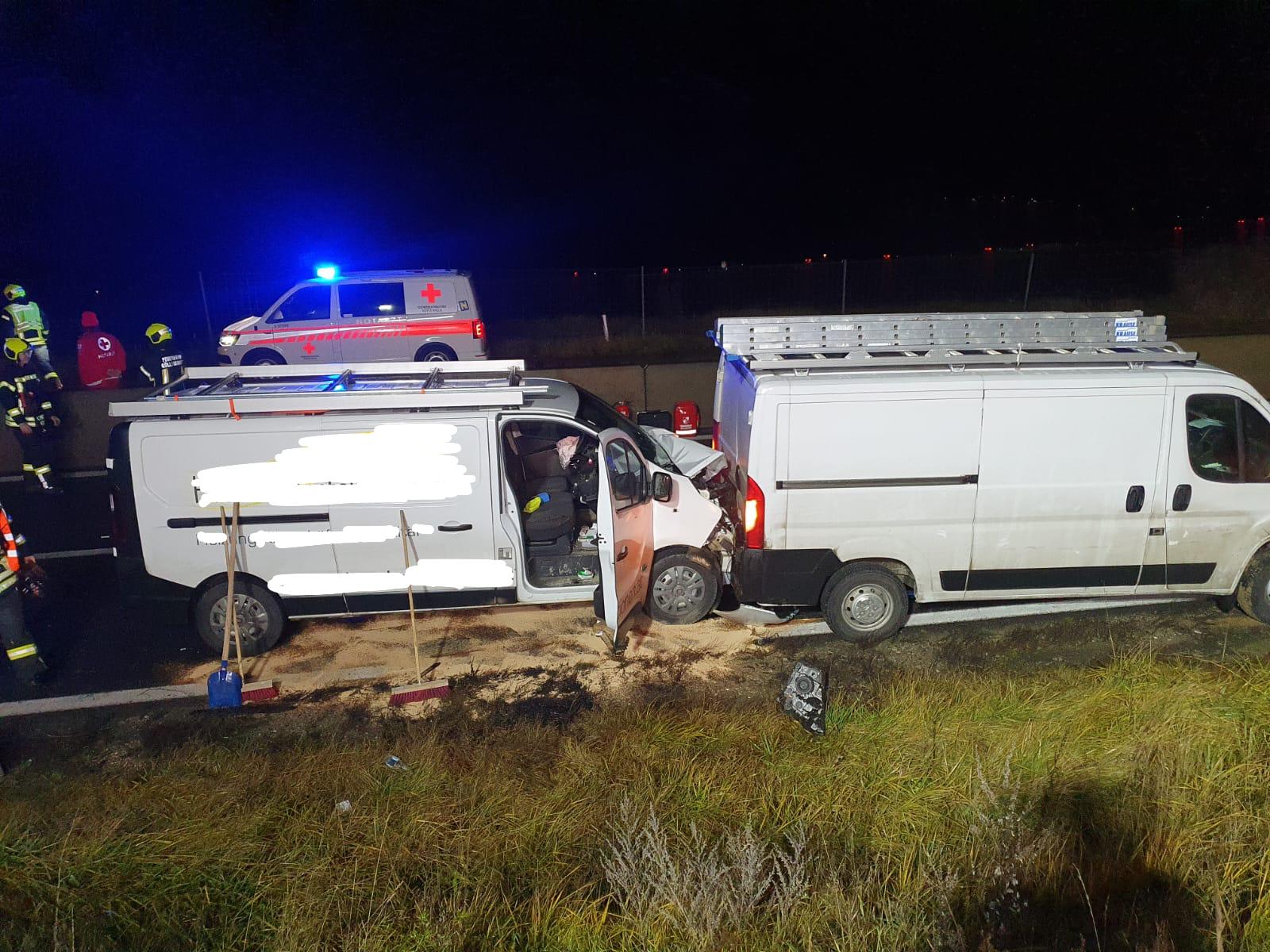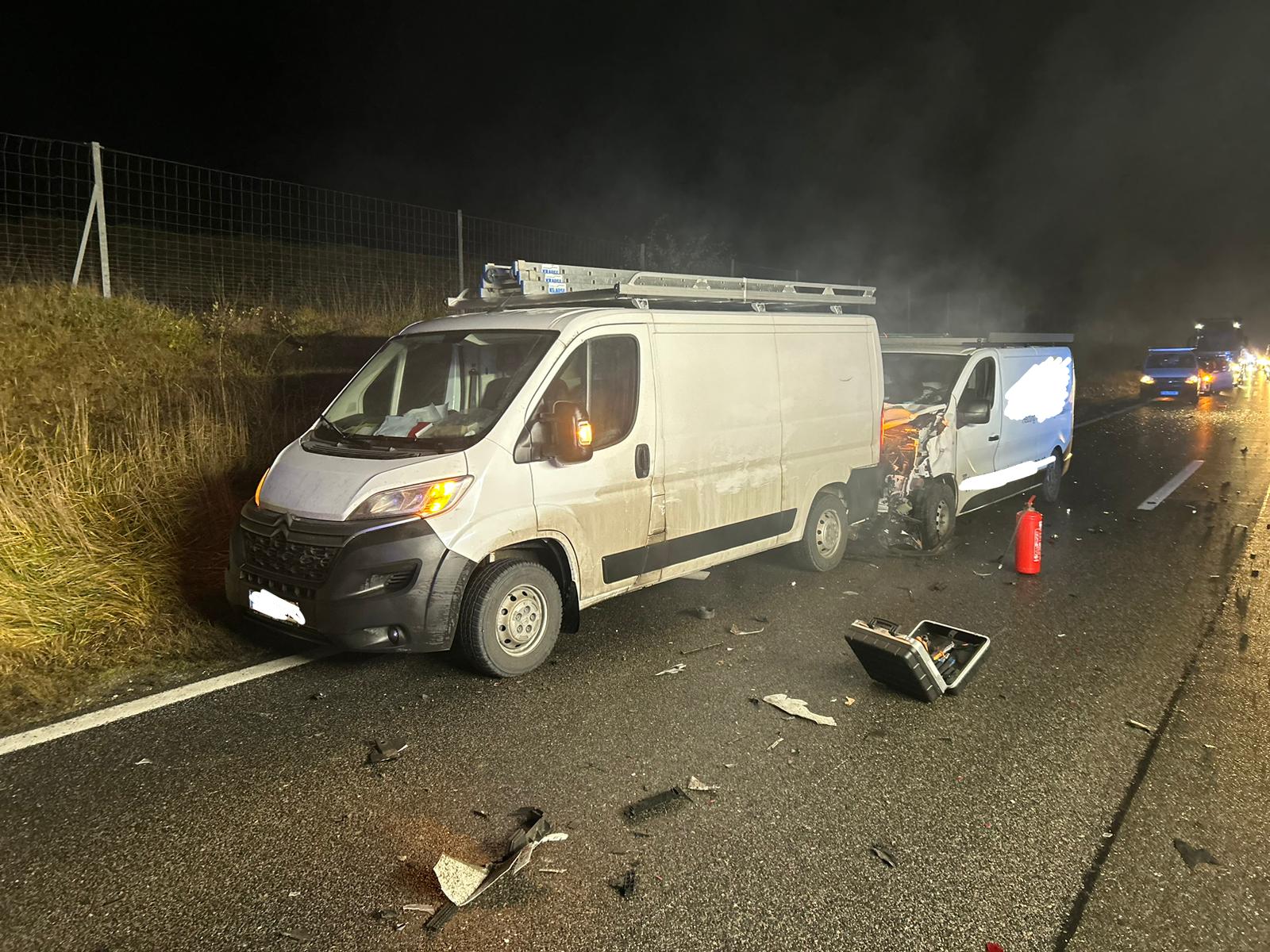 Ein Kastenwagen kollidierte mit einem vor ihm fahrenden Skoda, und verkeilte sich dann in einem zweiten Kastenwagen. Ein viertes Fahrzeug wurde nur leicht durch den Skoda beschädigt.