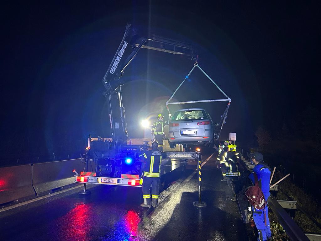 Die zwei schwer beschädigten, fahruntüchtigen Fahrzeuge mussten mittels Kran voneinander getrennt werden und wurden danach verladen und gesichert abgestellt. Die beiden anderen PKW konnten selbstständig die Weiterfahrt antreten.