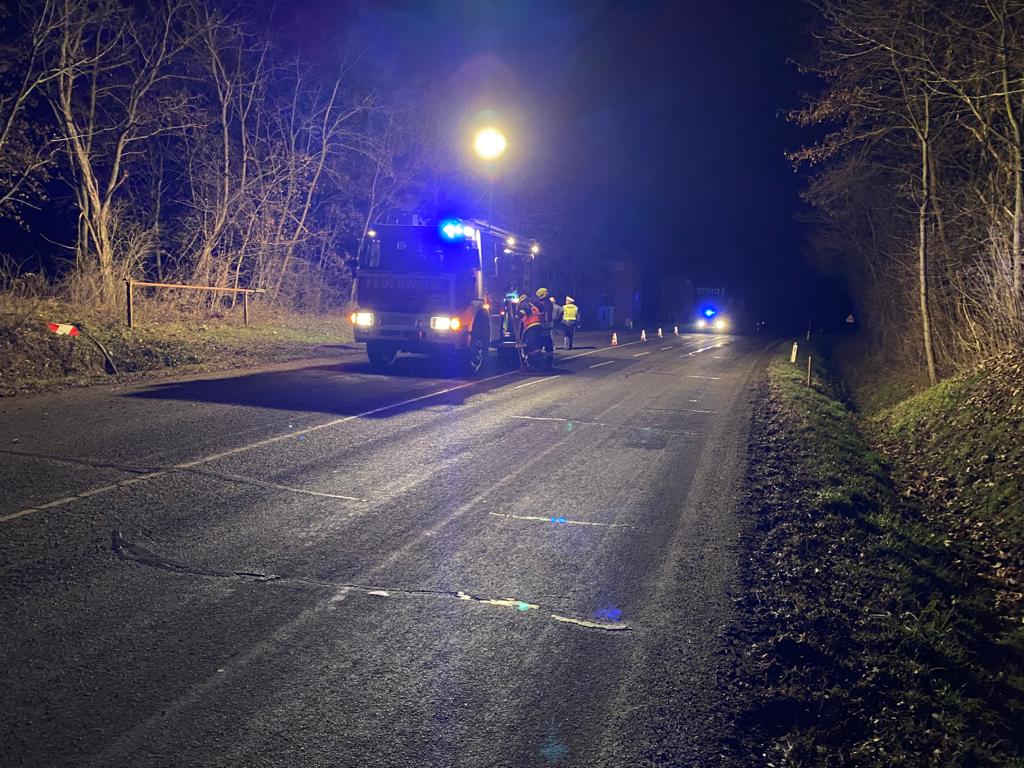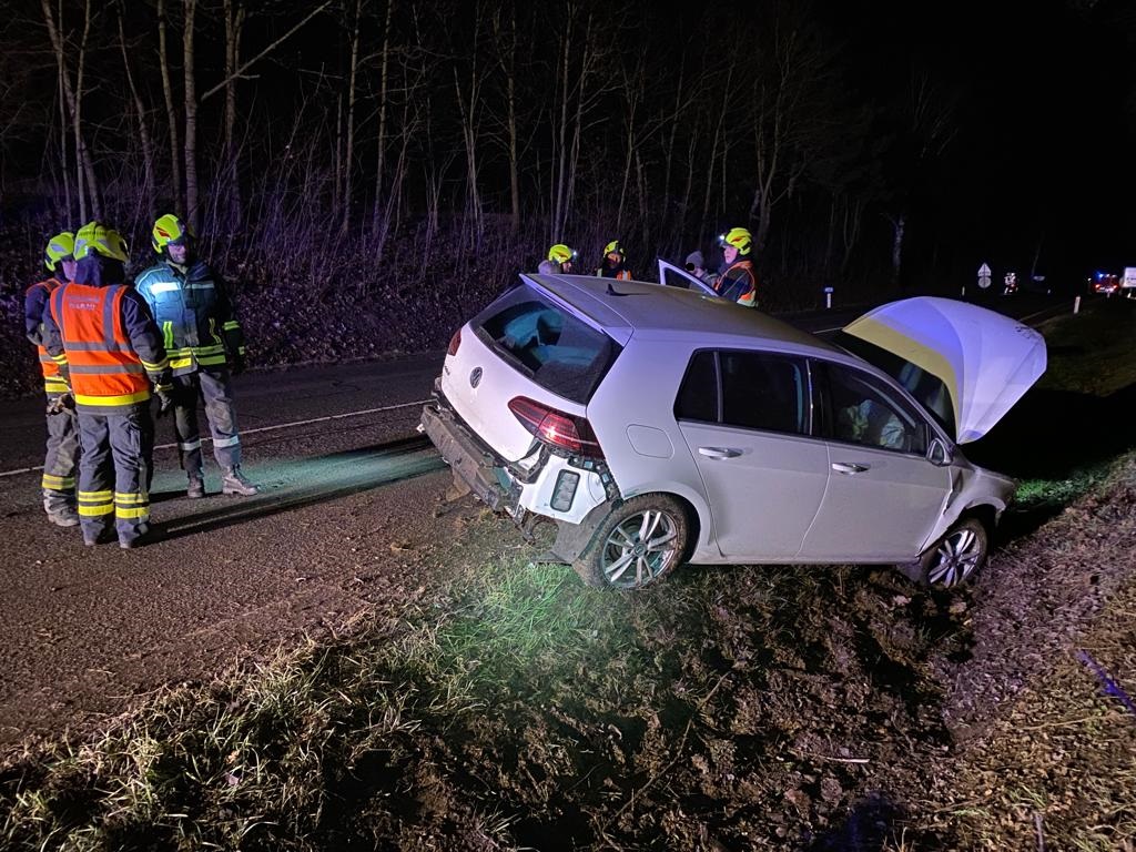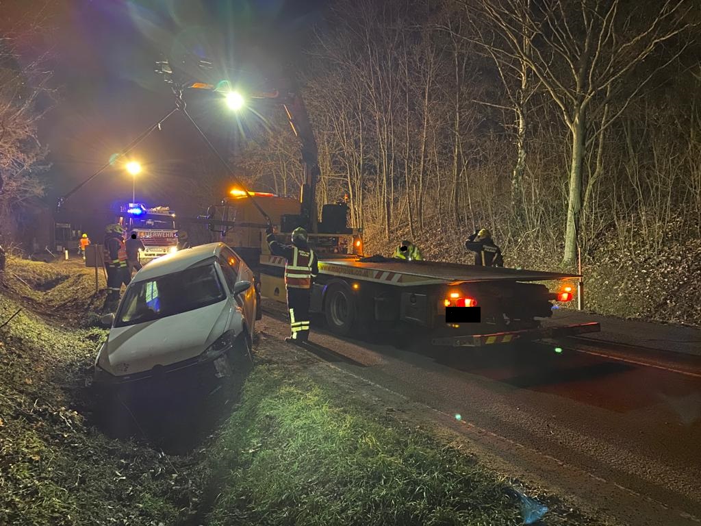 Ein PKW mit Elektroantrieb kam von der Fahrbahn ab und landete im Straßengraben. Die Lage stellte ein Verkehrshindernis dar, durch den Antrieb des PKW mussten aus Sicherheitsgründen entsprechende Maßnahmen getroffen werden.