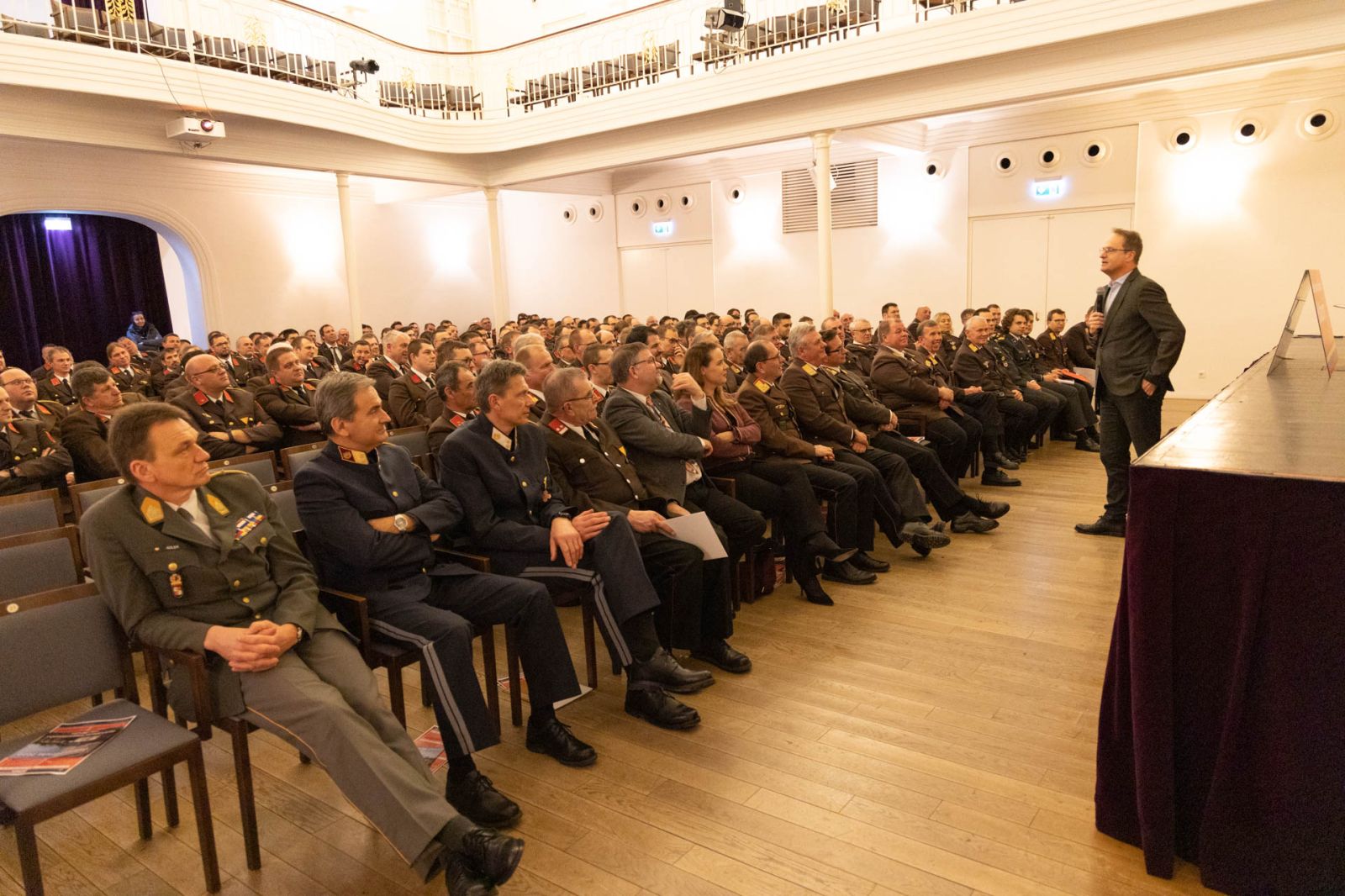 Bezirksfeuerwehrkommandant Alois Zaussinger freute sich über die Teilnahme von rund 200 Feuerwehrmitgliedern aus den verschiedenen Feuerwehrkommanden und weiteren Ehrengästen beim Bezirksfeuerwehrtages am 24.02.2023 im Konzerthaus Ziersdorf.