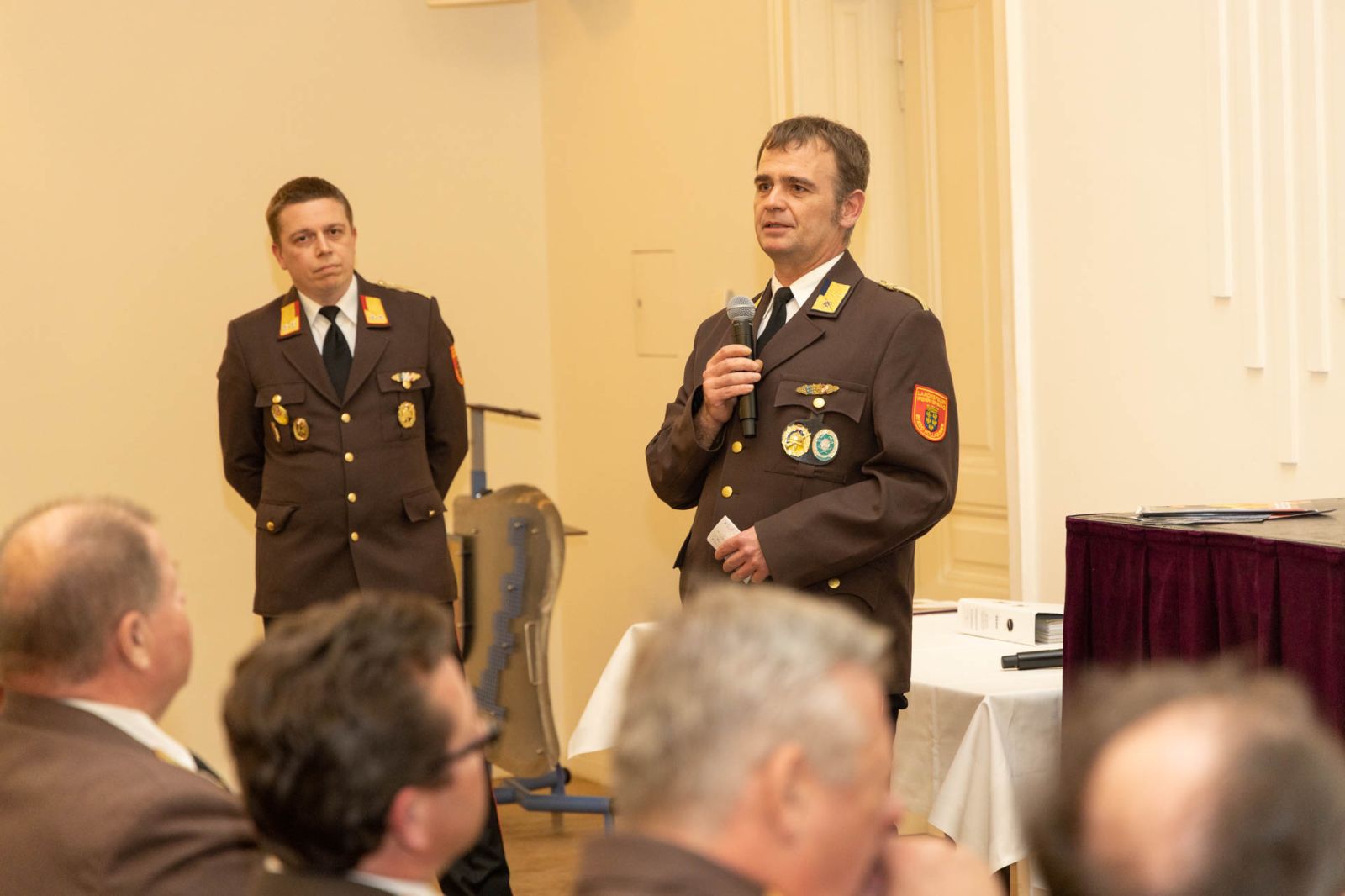 Franz Pröstler als Leiter des Bezirksführungsstabes und Abschnittsfeuerwehrkommandant Markus Zahlbrecht referierten über die Neuaufstellung des Bezirksführungsstabes.
