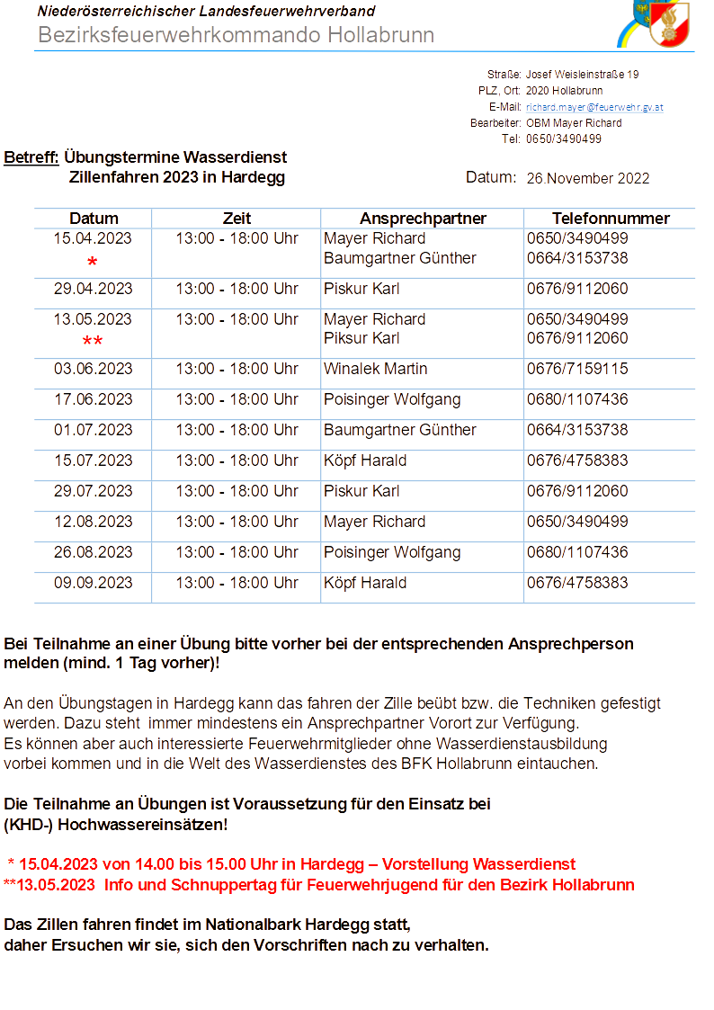 Die Vorbereitungsarbeiten für den Wasserdienst des BFK Hollabrunn wurde im April 2023 von den Sachbearbeitern WD im FF Haus Guntersdorf erledigt.