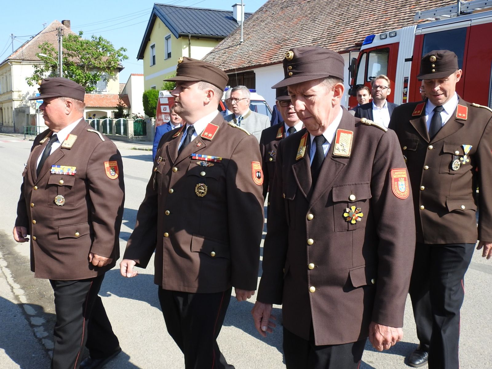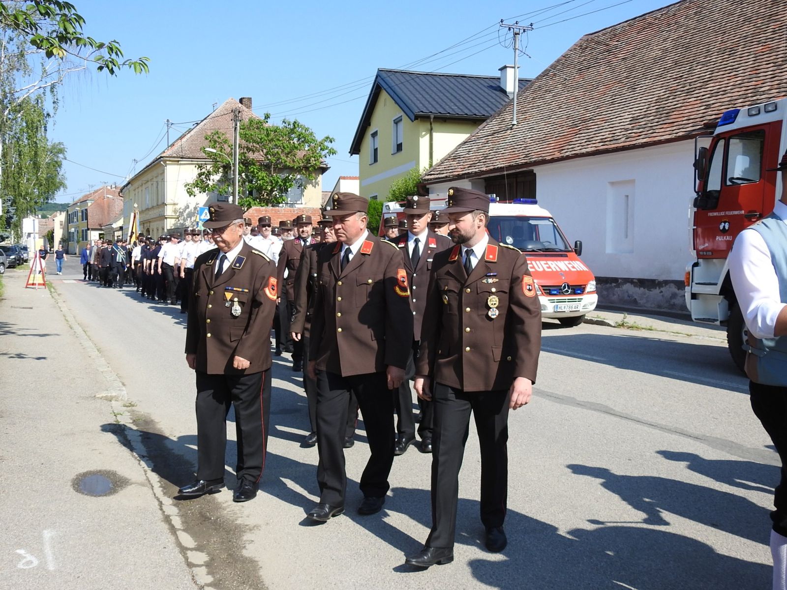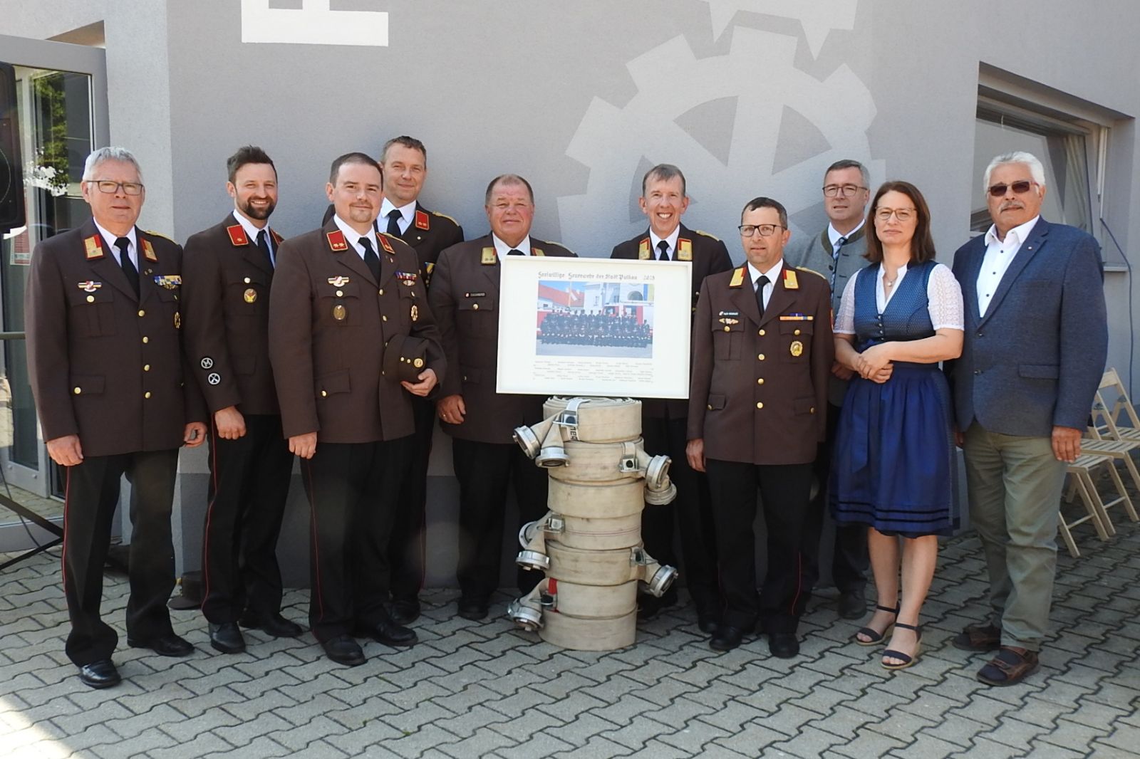 Bgm. Leo Ramharter, Vzbgm. DI Christina Ruisinger mit allen anwesenden Stadt- und Gemeinderäten, LFR Alois Zaussinger, BR Reinhard Scheichenberger, ABI Ing. Dr. Erhard Neubauer, FKUR Pfarrer Jerome Ciceu, Alle Feuerwehren des Feuerwehrunterabschnittes 3 (Groß-Reipersdorf, Rafing, Rohrendorf), die Trachtenkappelle Pulkau, den ÖKB Stadtverband Pulkau.