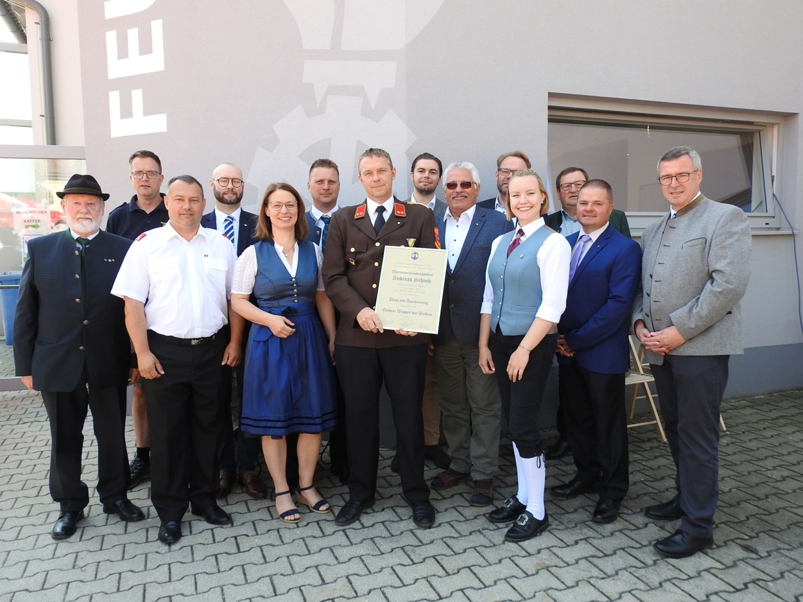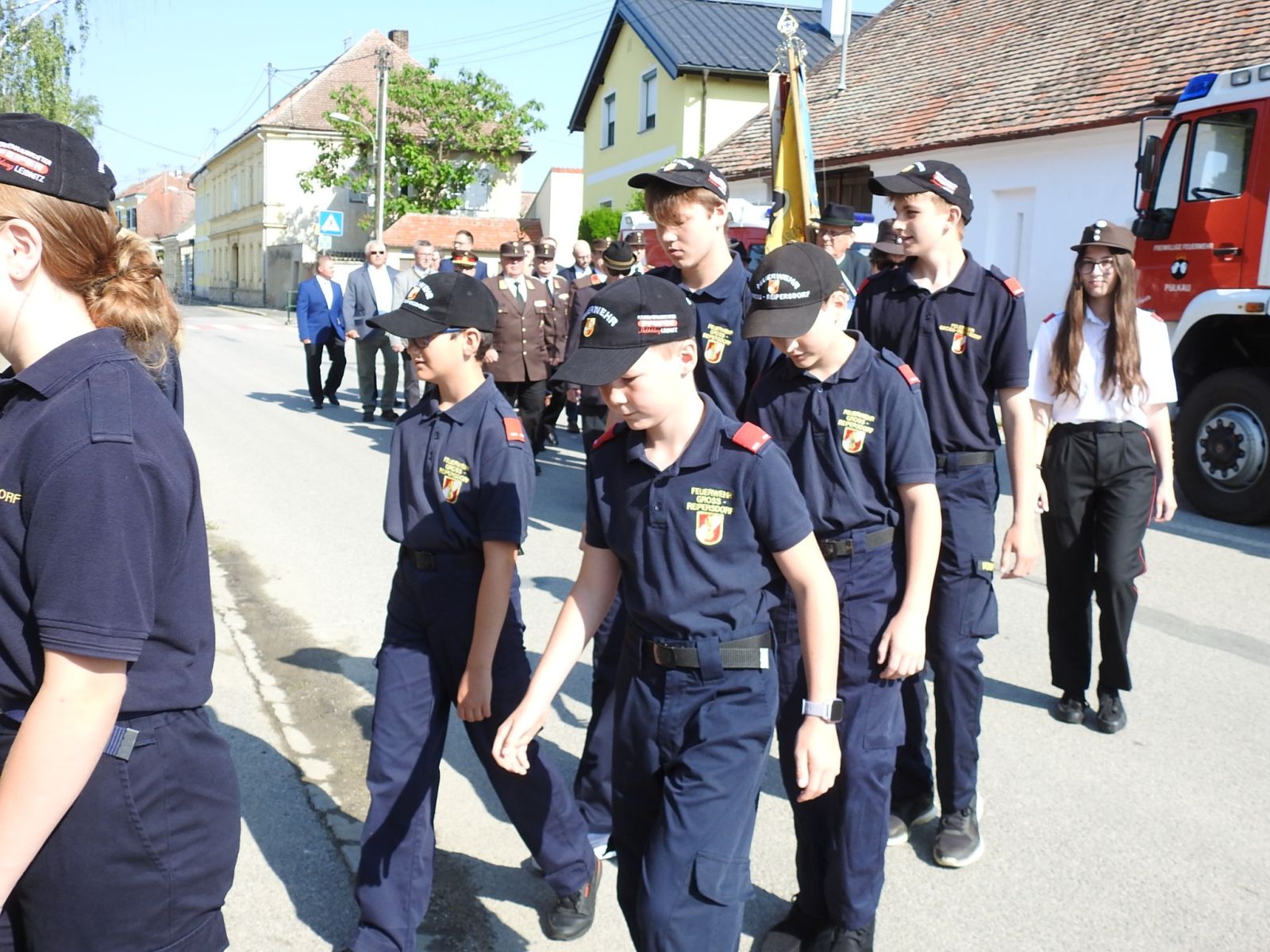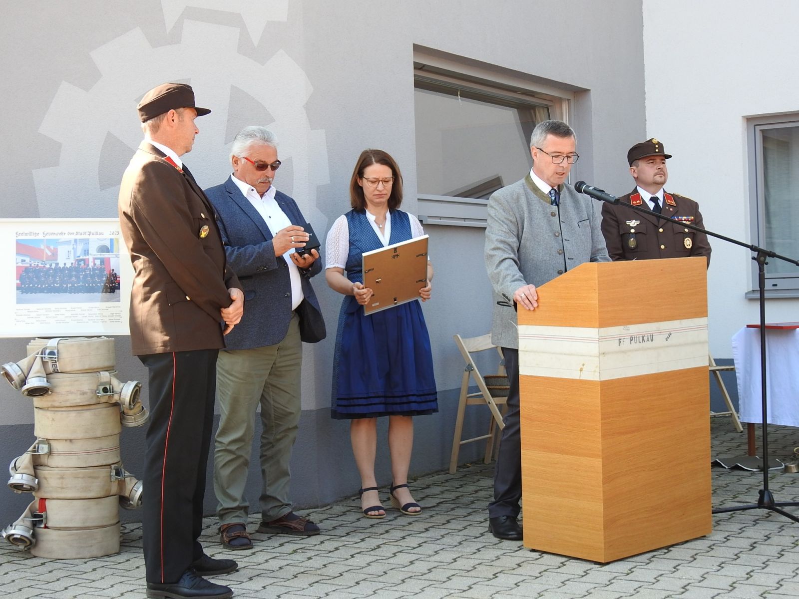 Bgm. Leo Ramharter, Vzbgm. DI Christina Ruisinger mit allen anwesenden Stadt- und Gemeinderäten, LFR Alois Zaussinger, BR Reinhard Scheichenberger, ABI Ing. Dr. Erhard Neubauer, FKUR Pfarrer Jerome Ciceu, Alle Feuerwehren des Feuerwehrunterabschnittes 3 (Groß-Reipersdorf, Rafing, Rohrendorf), die Trachtenkappelle Pulkau, den ÖKB Stadtverband Pulkau.
