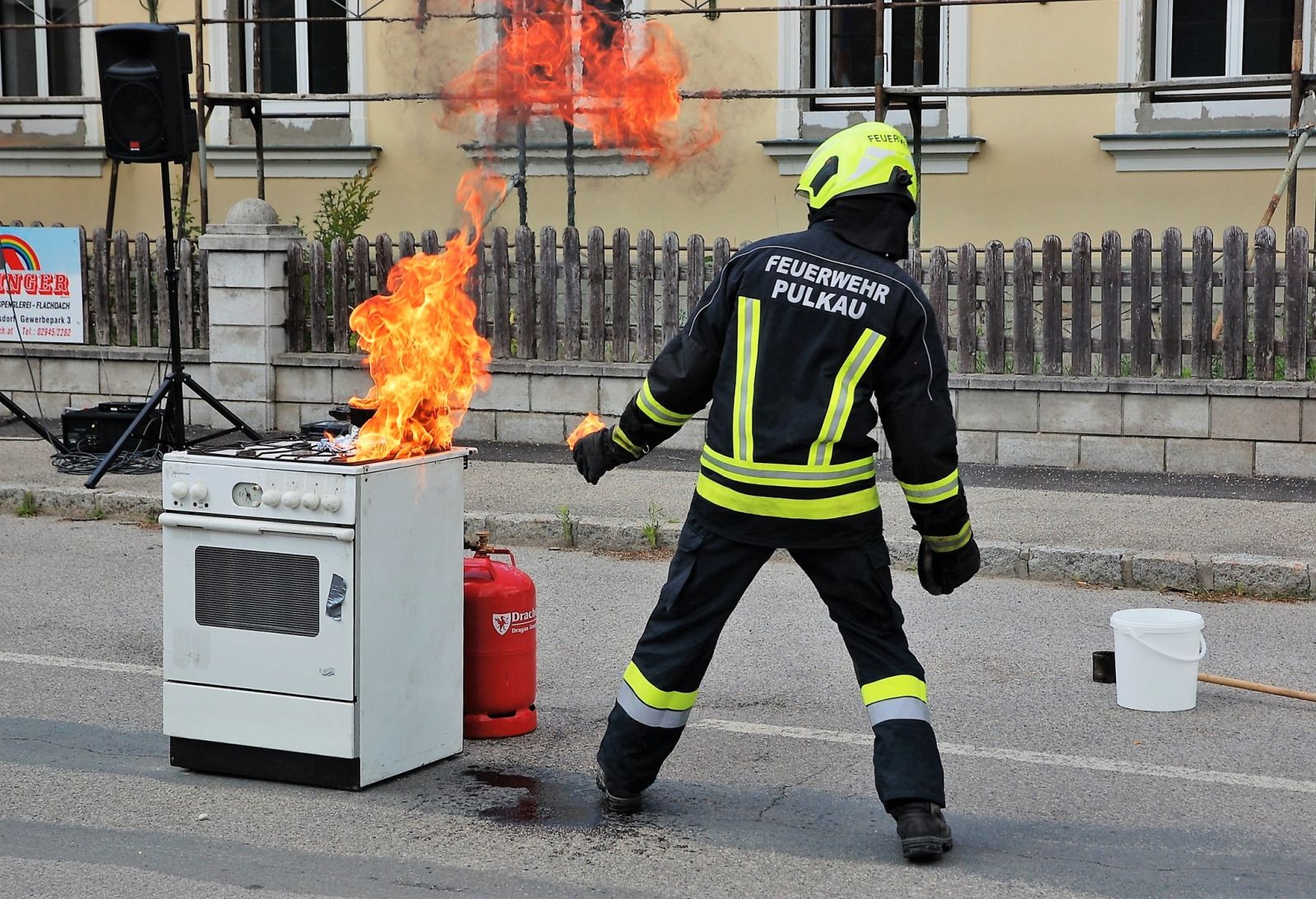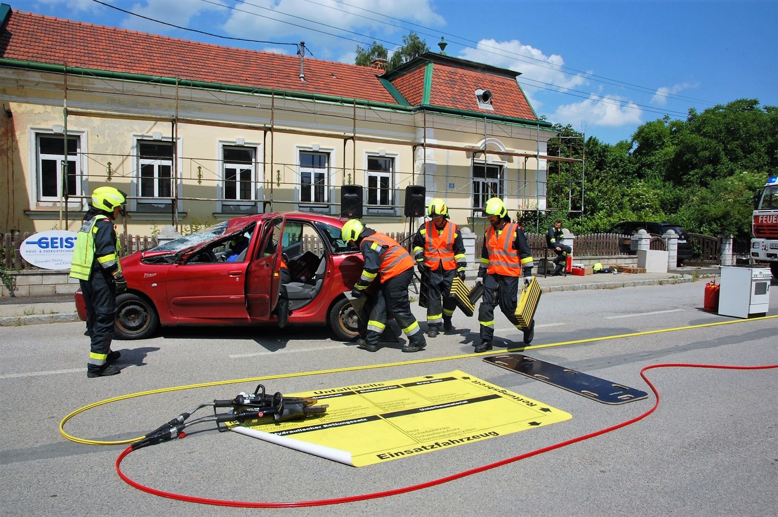 Den Nachmittag durften wir mit Vorführungen kurzweilig gestalten. Neben einer Einsatzübung (Menschenrettung aus KFZ) zeigten wir unseren Gästen die Gefahr einer Fettexplosion.