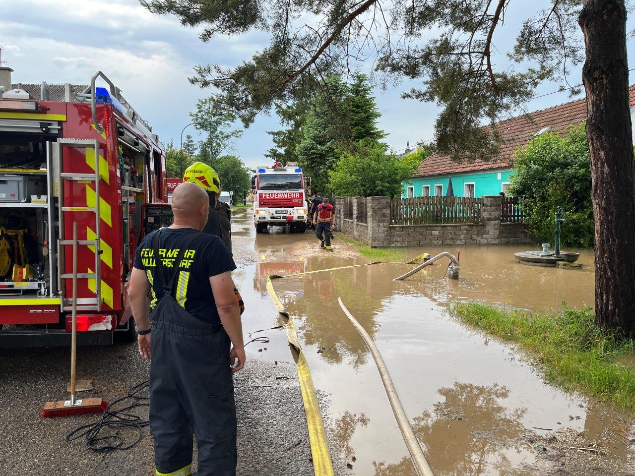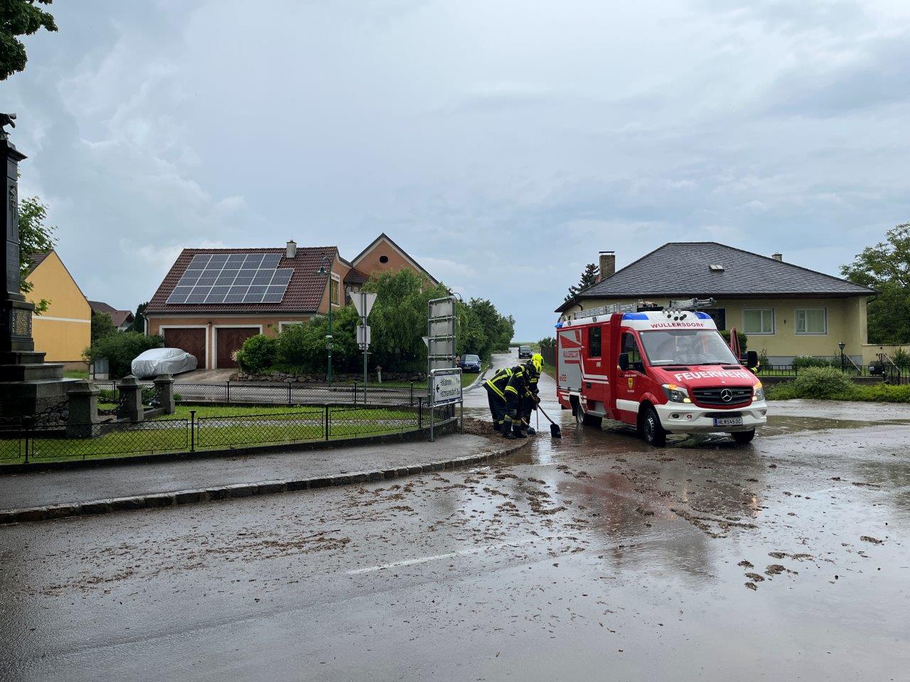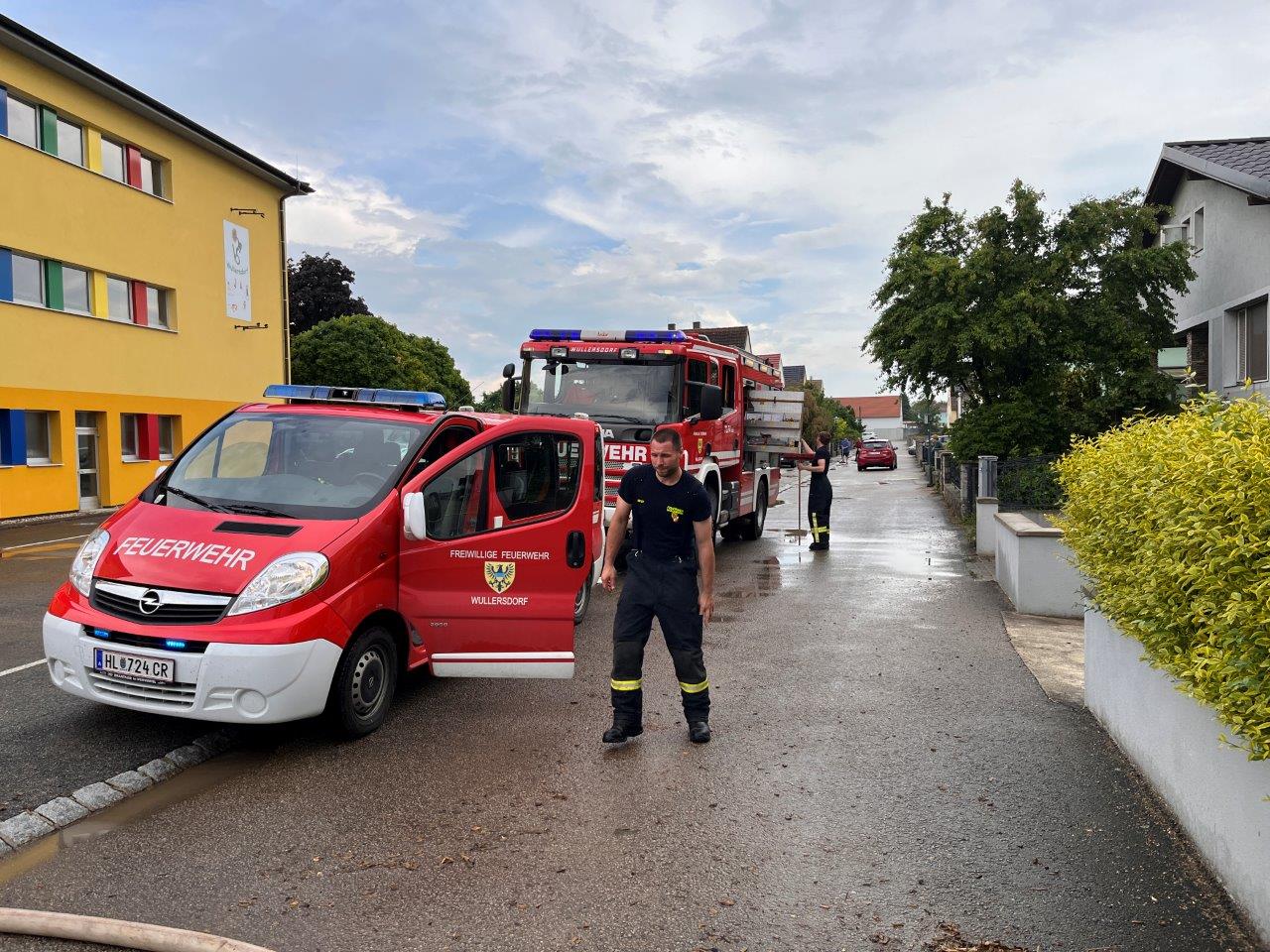 In Wullersdorf galt es ebenfalls mehrere Keller auszupumpen und Straßenzüge zu reinigen, so stand zum Beispiel der Kreisverkehr beim Gemeindeamt unter Wasser. Im Lagerhaus Hetzmannsdorf-Wullersdorf war der komplette Firmenplatz bis zu 30cm unter Wasser.