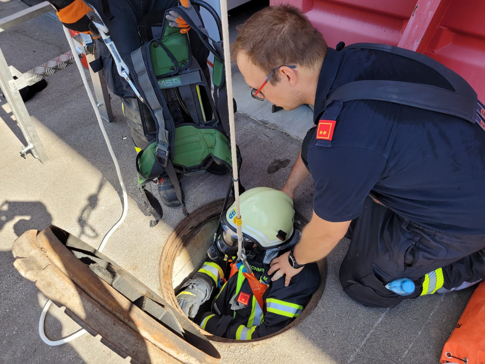 In der Ausbildung wurden die Teilnehmer an drei verschiedenen Stationen mit spezifischen Szenarien der Höhen- und Tiefenrettung konfrontiert: