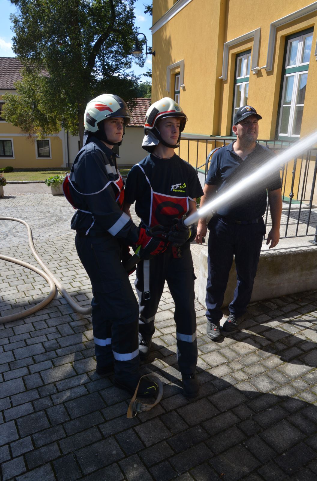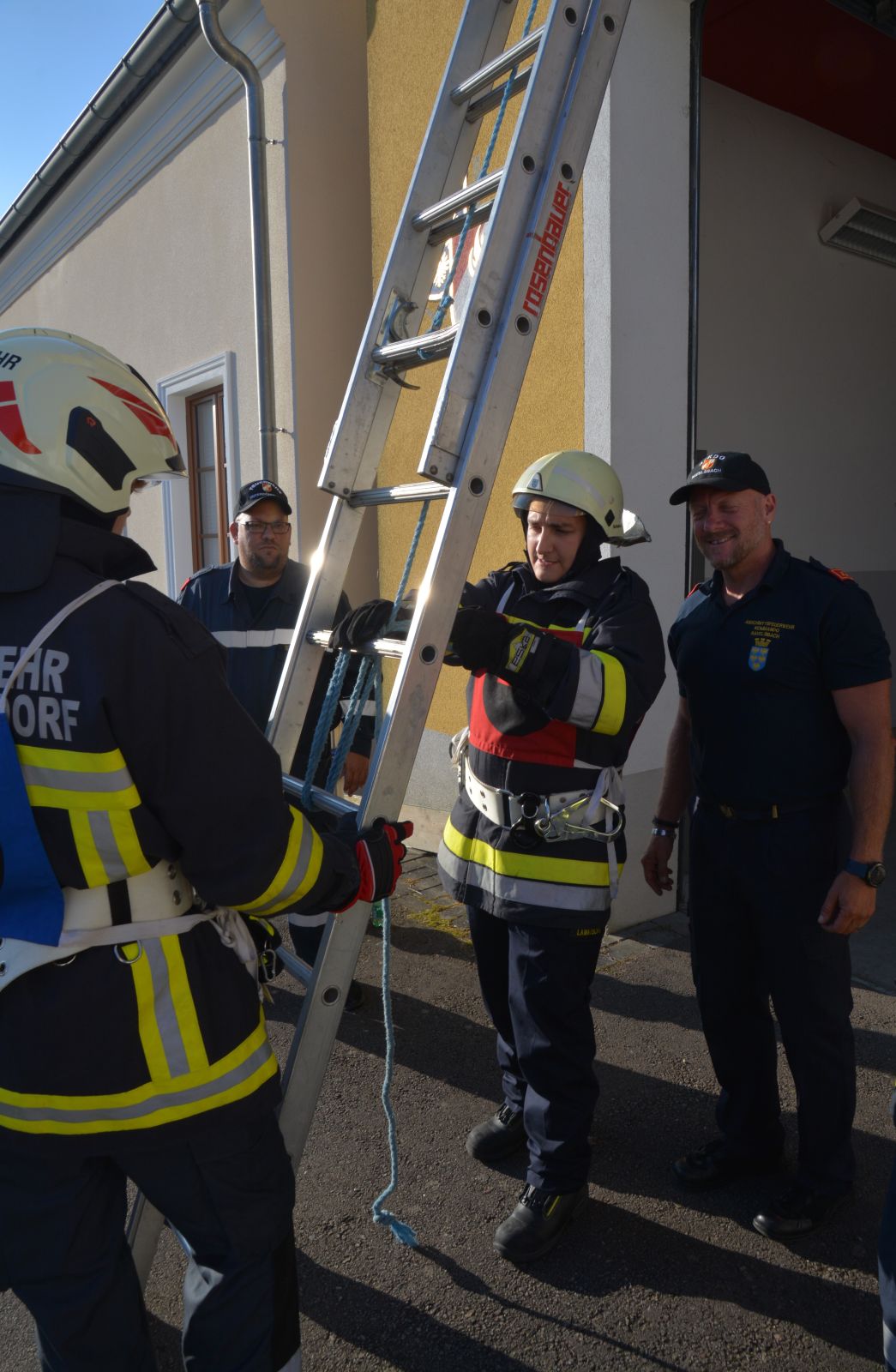 Im Anschluss des 2. Tages fand gleich die Prüfung zum Feuerwehrmann bzw. Feuerwehrfrau statt. Prüfer war HBI Wolfgang Brunthaler (FF Mailberg) mit seinem Team. Zuerst waren 20 Fragen bei einem Test zu beantworten. Danach ging es ins Freie und musste eine der Stationen bewältigen. Alle 21 Teilnehmer schafften die Prüfung. Der Abschnitt und der Bezirk gratulierten recht herzlich.