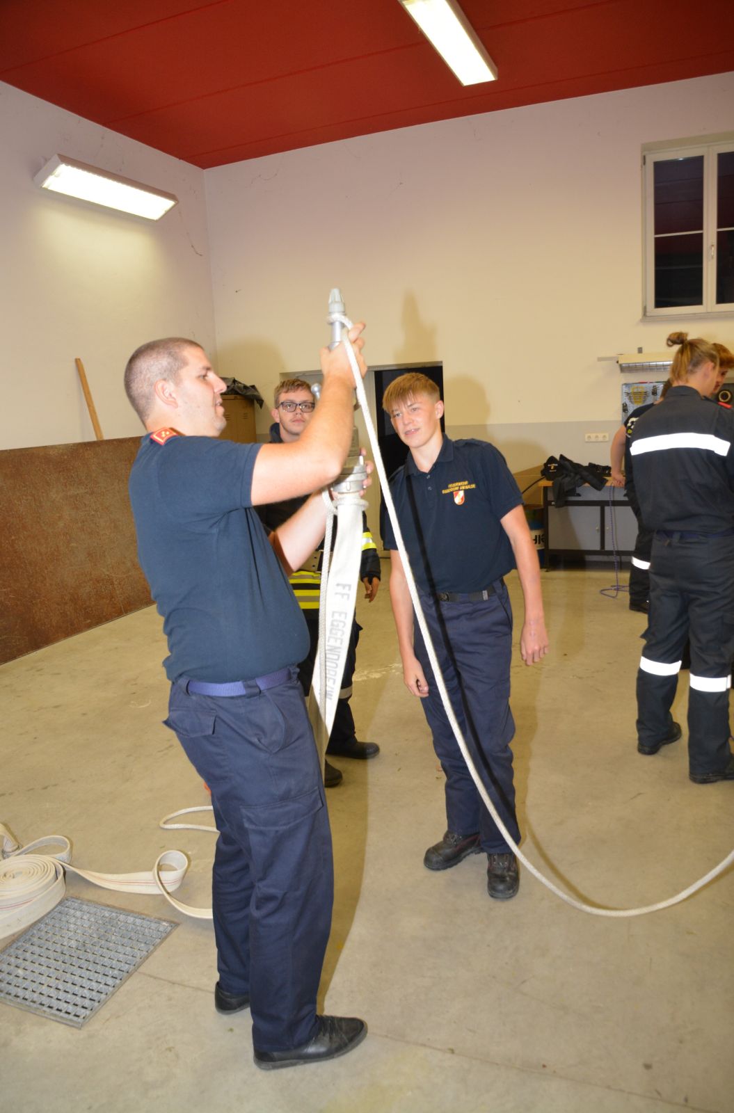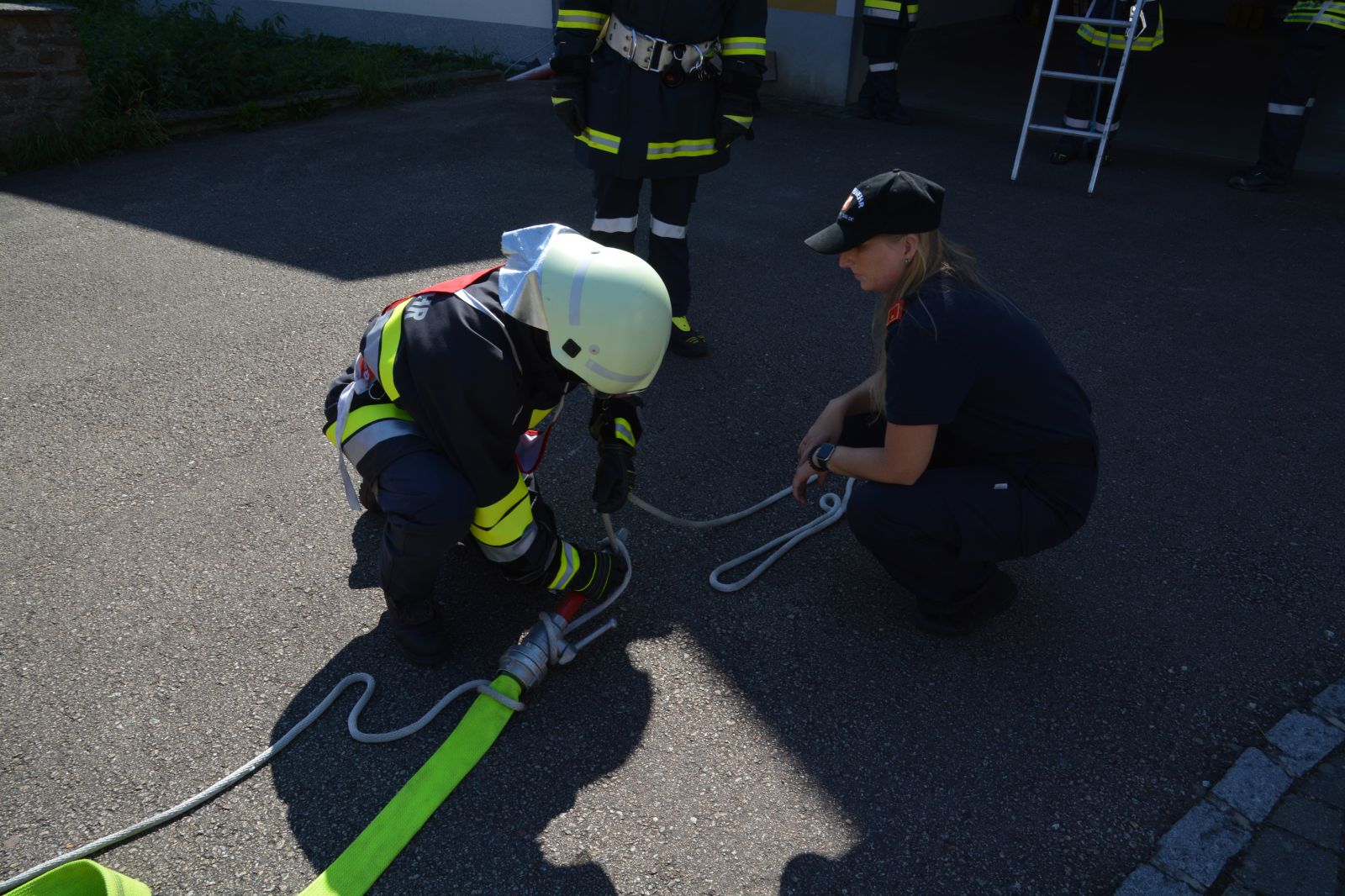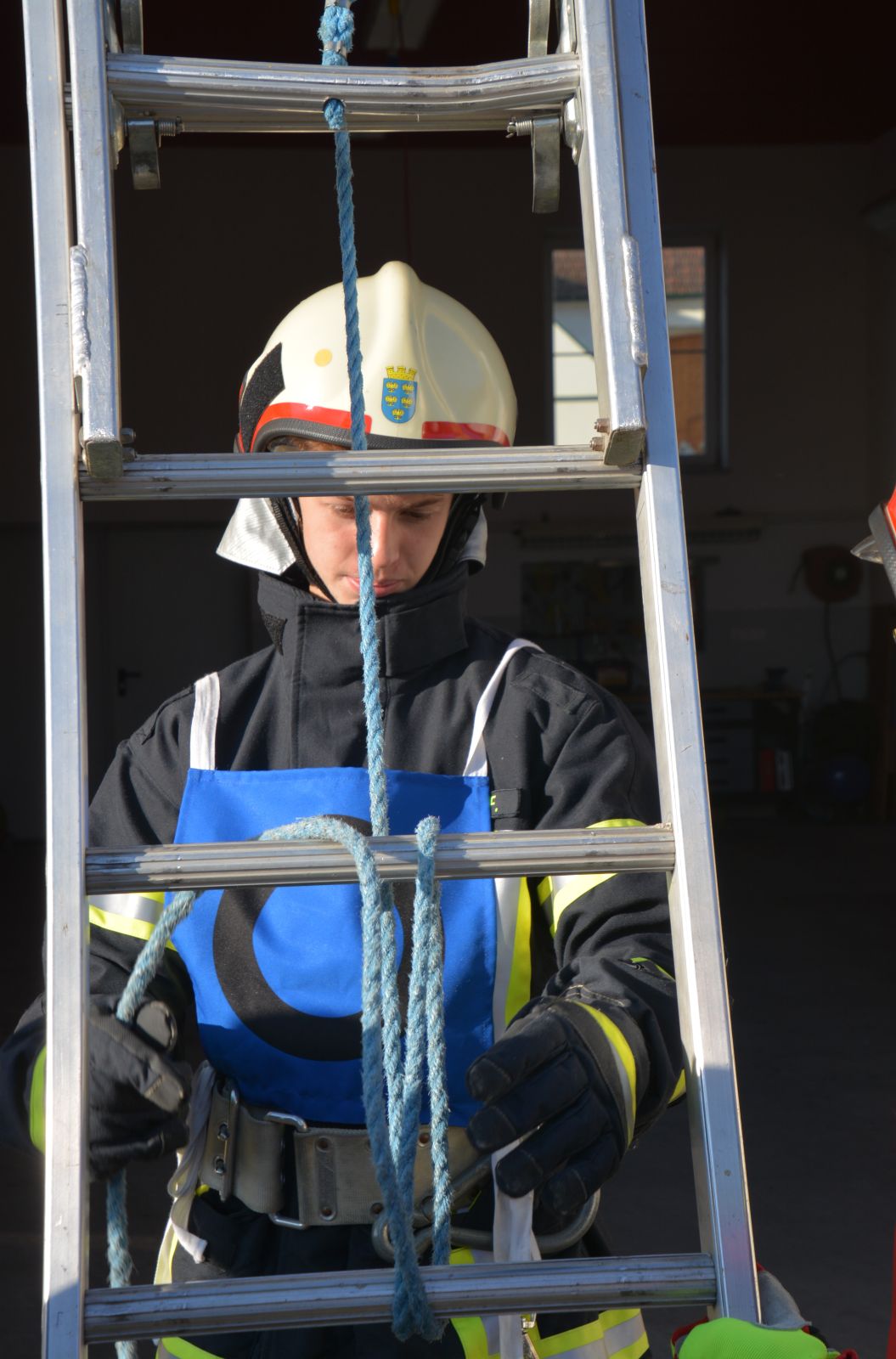Bei der Basisausbildung werden den neuen Feuerwehrmitgliedern die Grundkenntnisse im Feuerwehrwesen vermittelt.