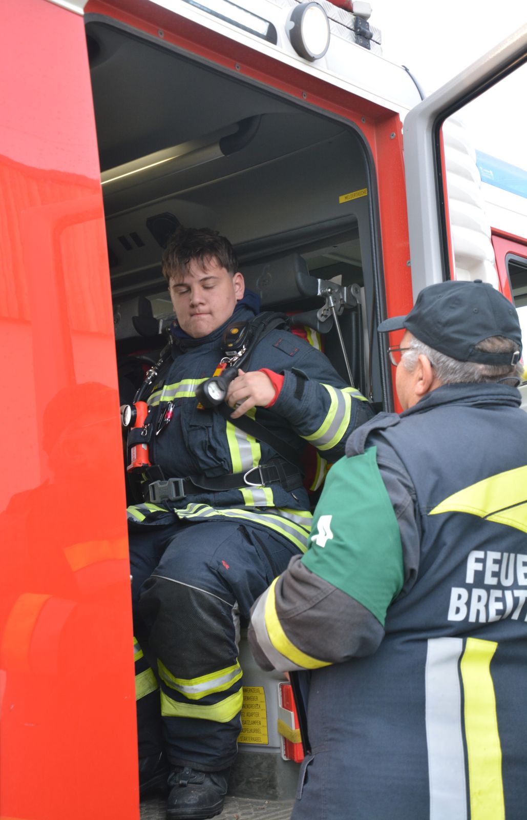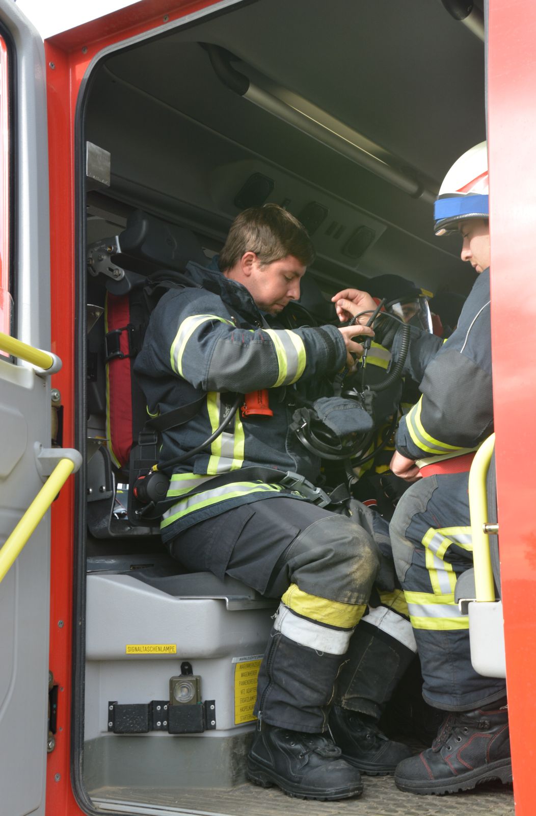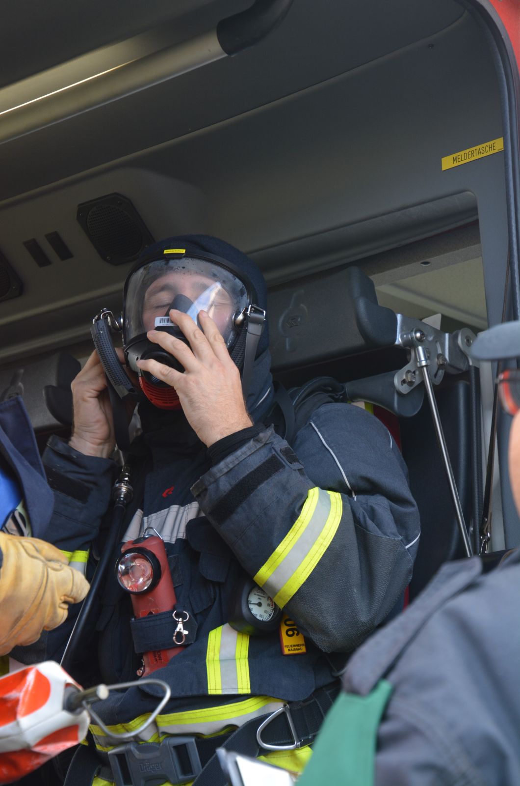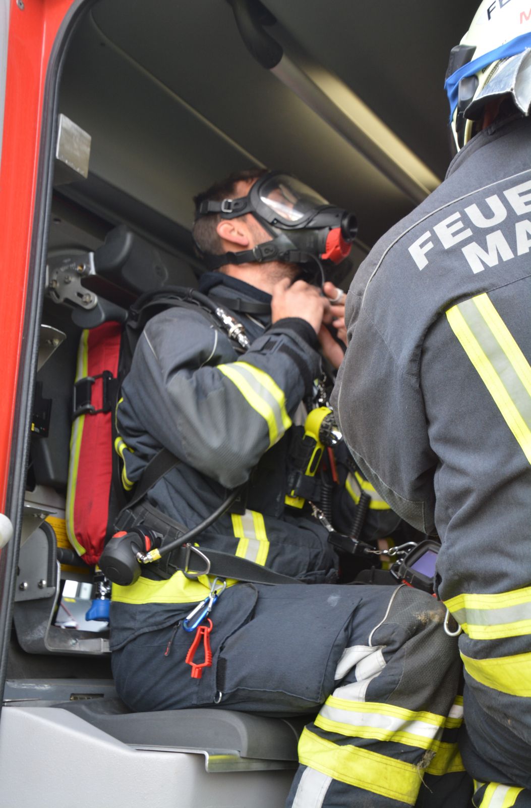 Im praktischen Teil musste ein simulierter Zimmerbrand gelöscht werden. Dabei musste der Innenangriff mit Atemschutz in einer vorgegebenen Zeit absolviert werden.