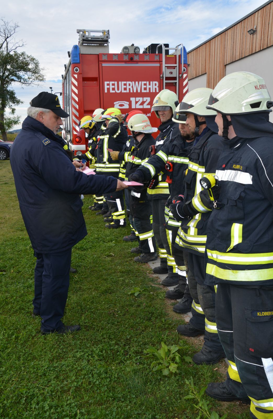 Bezirkskommandant LFR Alois Zaussinger bedankte sich bei den Prüfern sowie bei den Kameraden für die Ausbildungsprüfung. Er bezeichnete die Ausbildungsprüfung als sehr wichtig um die Gerätschaft besser kennenzulernen, zu wissen wo sich die Geräte im Fahrzeug befinden und es pflegt auch die Kameradschaft.