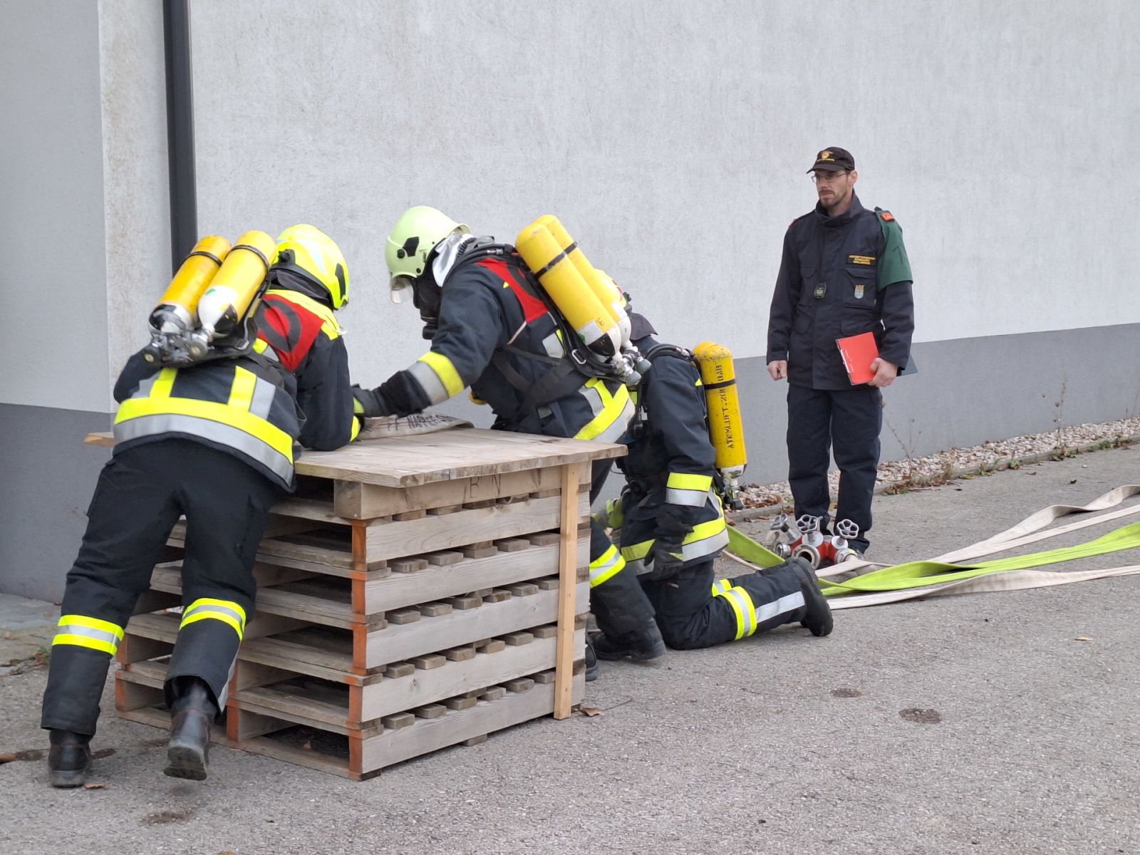 Zwölf Feuerwehrmänner der Feuerwehren Dürnleis (3 Mann), Haslach (2 Mann) und Kleinweikersdorf (7 Mann) stellten sich der Ausbildungsprüfung Atemschutz, nach sechs Wochen intensiver Vorbereitungszeit. Die Prüfung fand am 11.11.2023 im Feuerwehrhaus Kleinweikersdorf statt.