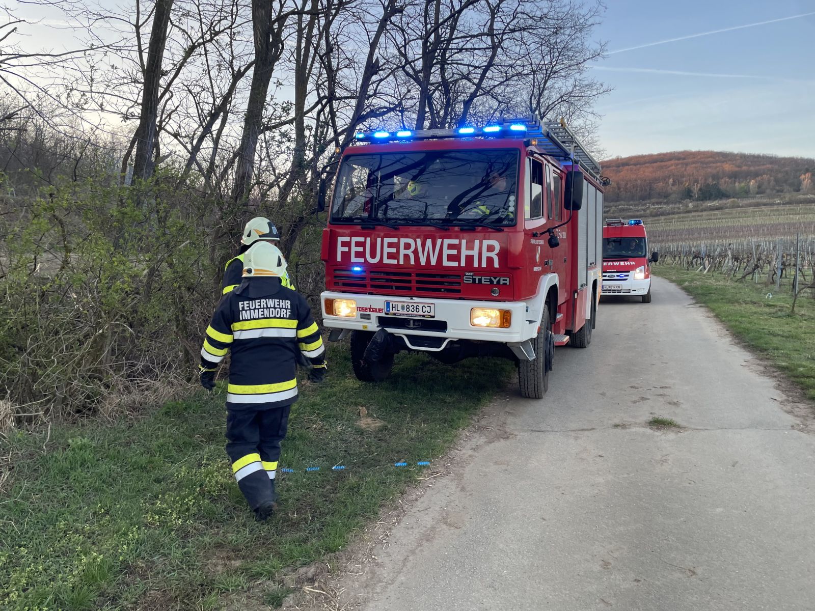 In den frühen Morgenstunden des 26.03.2024 wurde die Feuerwehr Immendorf, kurz vor sechs Uhr, zu einem Vegetationsbrand gerufen. Wie uns die Landeswarnzentrale mitteilte, befand sich die Einsatzstelle kurz vor dem Wald Richtung Untermakersdorf. Bereits nach kürzester Zeit könnten beide Fahrzeuge der Feuerwehr Immendorf vollbesetzt ausrücken. Zunächst fanden die Einsatzkräfte jedoch keinen Brand vor. Nach Rücksprache mit einem Autofahrer, teilte dieser den Einsatzkräften mit, dass sich das Feuer auf der anderen Waldseite befand. Nach Absprache mit dem Kommandanten der Feuerwehr Untermakersdorf bzw. Hadres erkundete die Mannschaft von Immendorf den Einsatzort und stellte fest, dass es sich um ein absichtliches Feuer zum Verhindern von Frostschäden im Weingarten handelte. Somit konnten die Feuerwehrmitglieder wieder einrücken. Im Einsatz standen die Feuerwehr Immendorf mit zwei Fahrzeugen und 15 Feuerwehrleuten.
