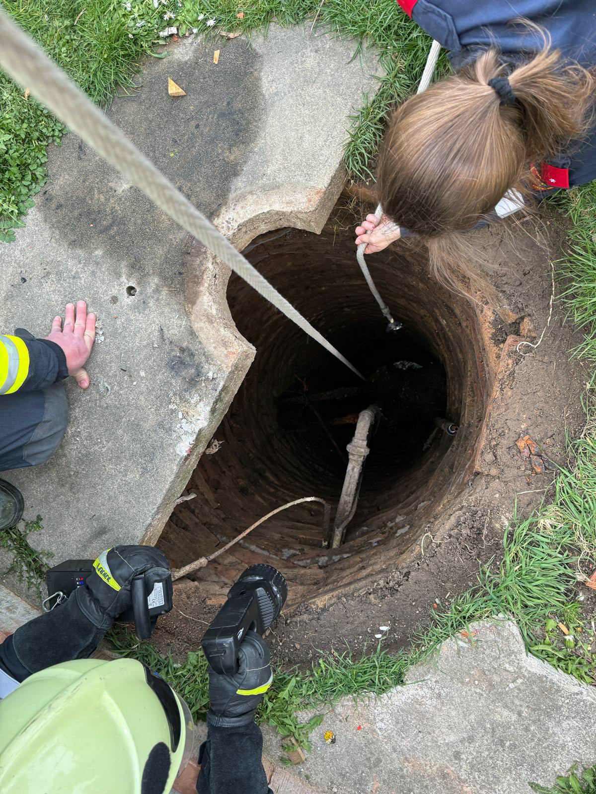Beim Eintreffen vor Ort nahmen die Einsatzkräfte sofort Kontakt mit dem verletzten Kind auf, das sich in einem 6-7 Meter tiefen, zum Glück trockenen Brunnen befand, und versuchten, den tapferen Jungen zu beruhigen