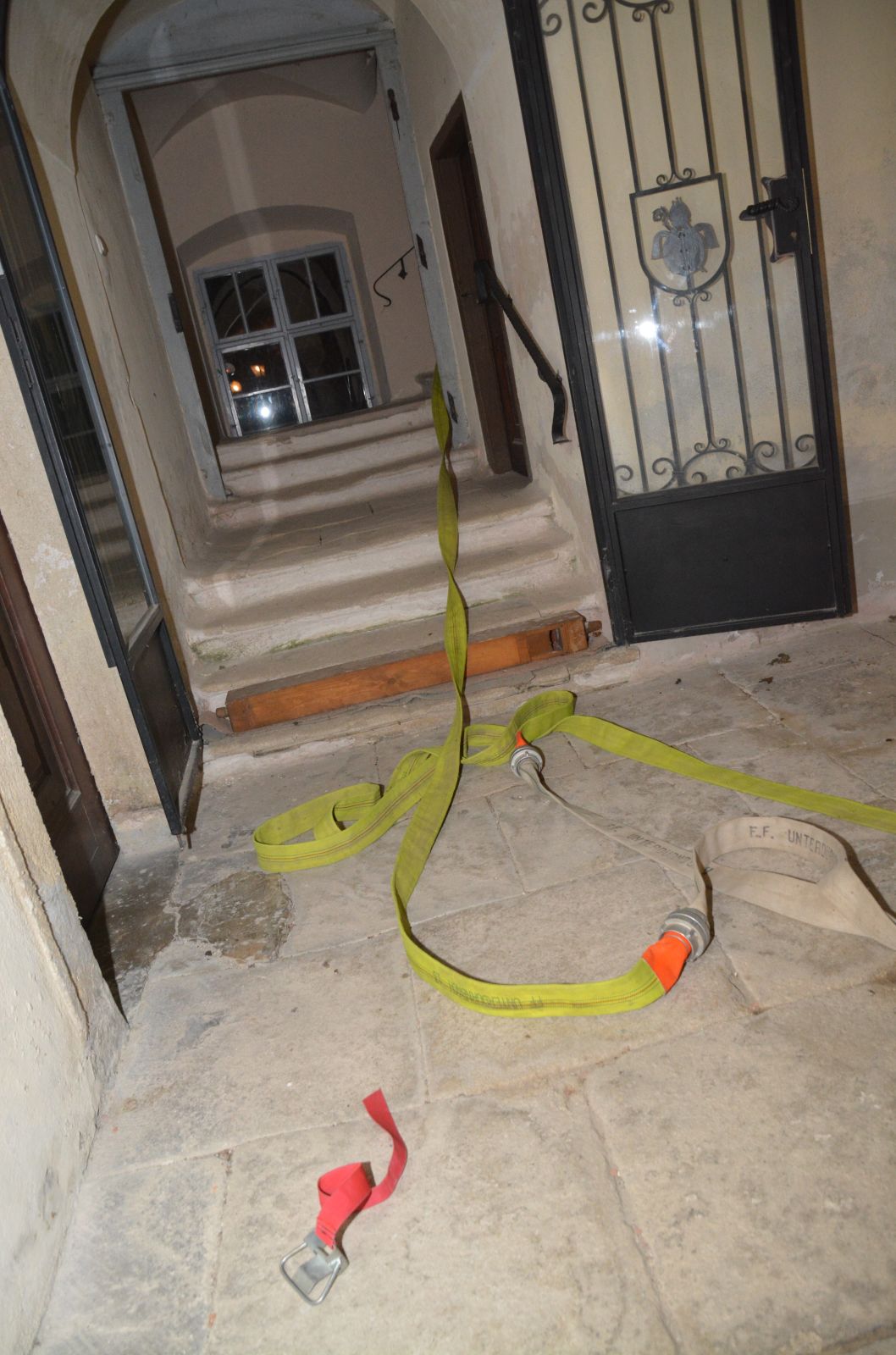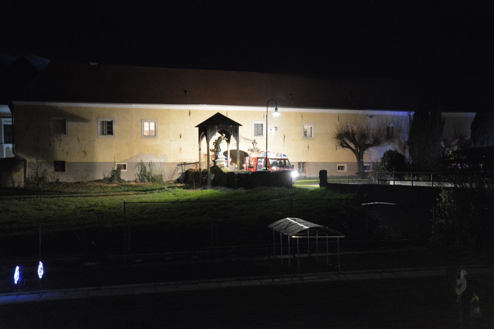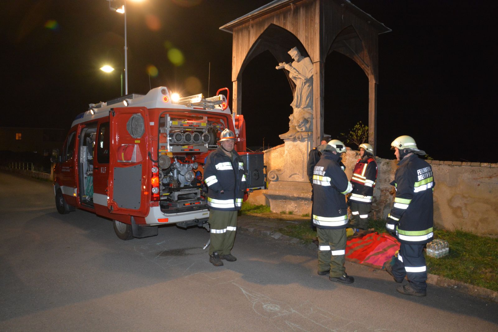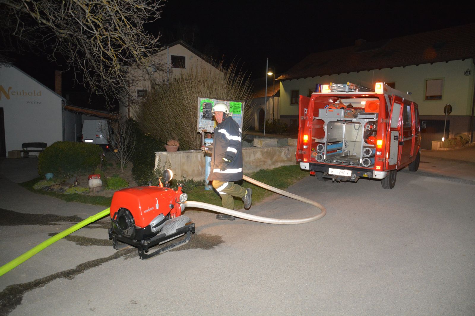 Erstes Szenario war eine Verpuffung bei Arbeiten am Dachboden, welche zu einem Dachstuhlbrand führte. Dabei wurde eine Person vermisst.