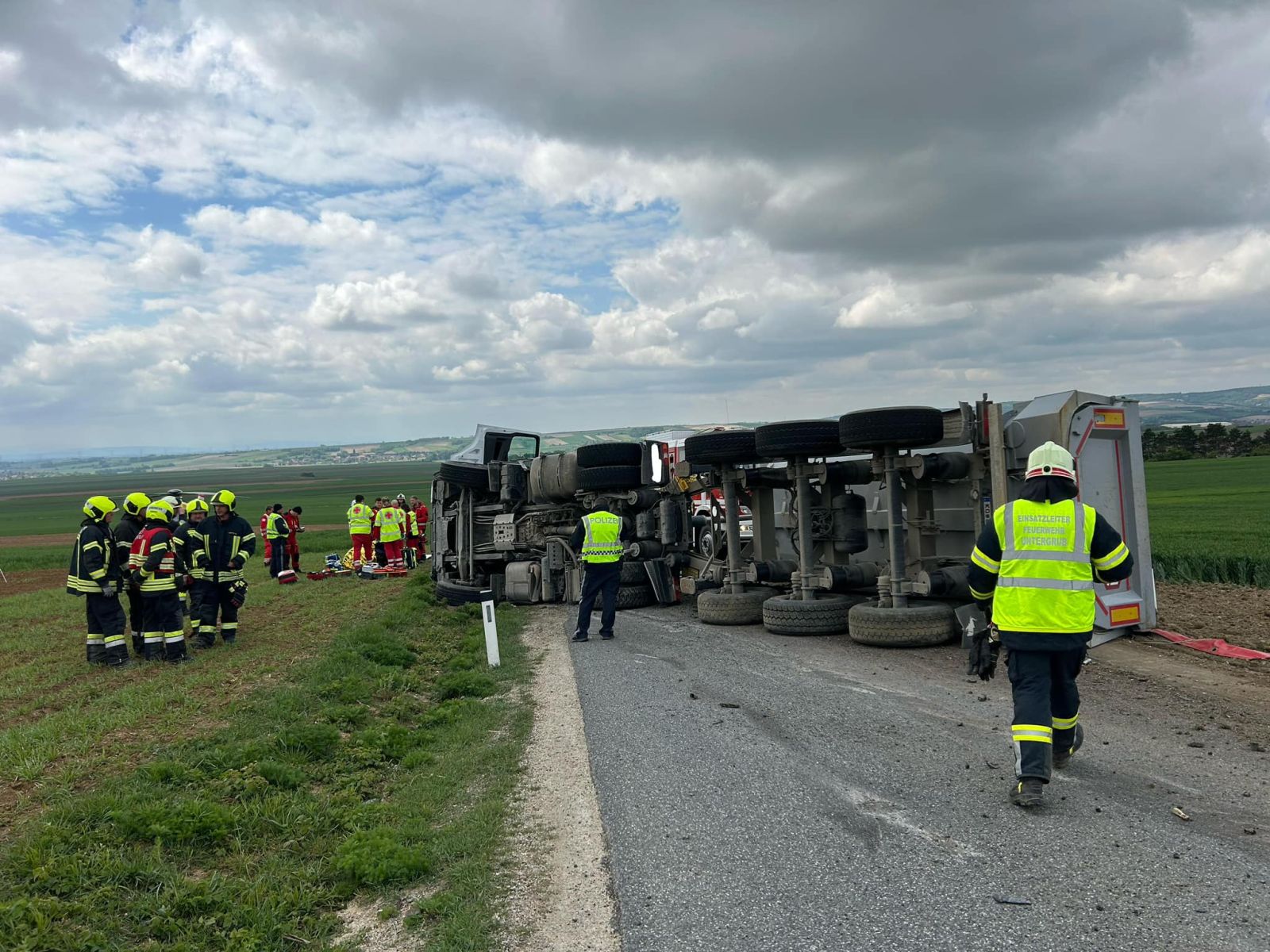 Am Montag, den 22. April 2024, gegen 12:00 Uhr wurden die Feuerwehren Untergrub, Viendorf und Göllersdorf zu einem LKW Unfall mit eingeklemmten Fahrer auf der L1086 außerhalb von Untergrub alarmiert.