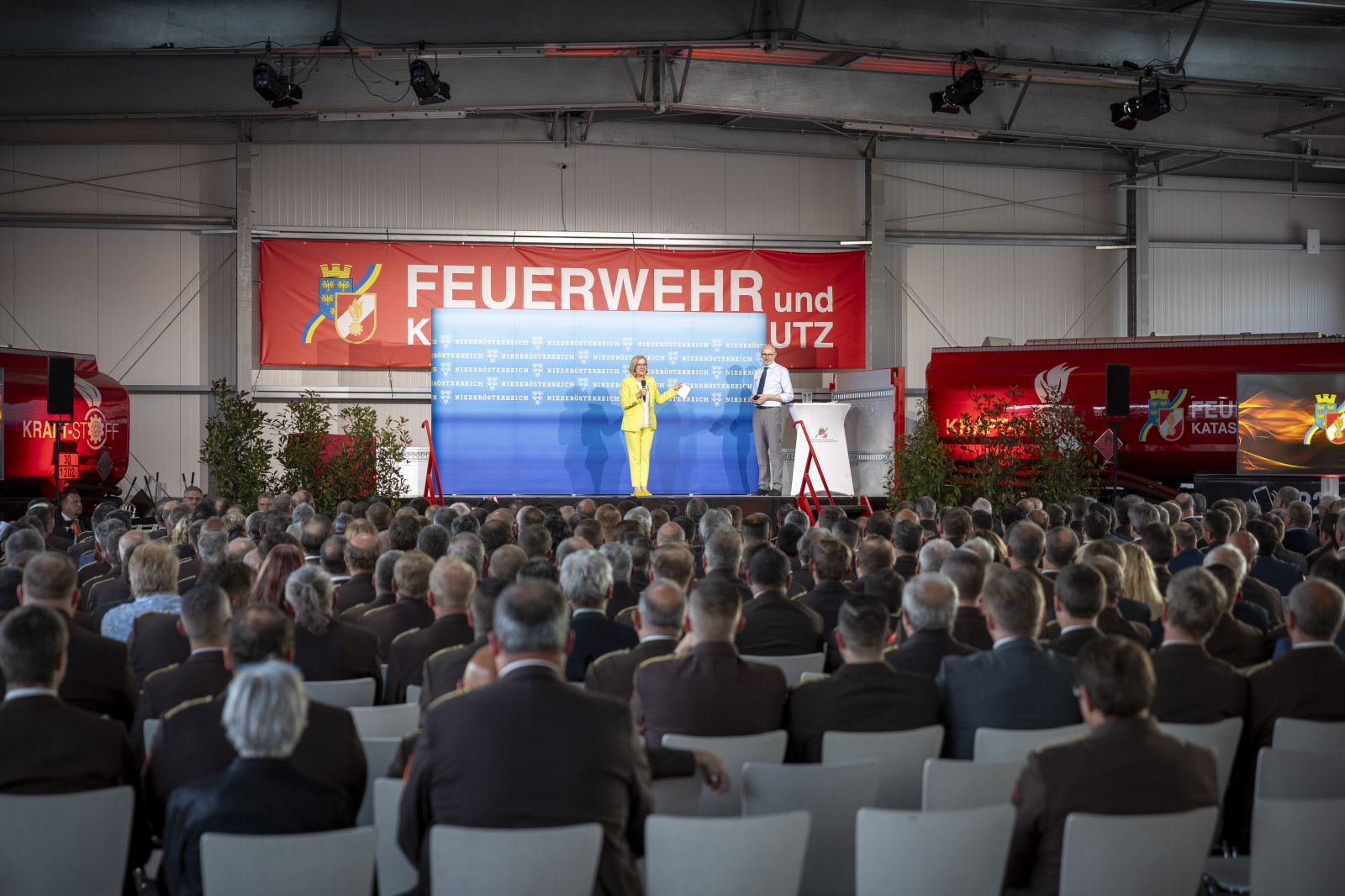 Diese besondere Zeremonie zollte den Feuerwehren Anerkennung, die ihr 100., 125., 140., 150. und 160. Gründungsjubiläum feierten. Landeshauptfrau Johanna Mikl-Leitner, LH-Stellvertreter Stephan Pernkopf, LBD Dietmar Fahrafellner und LBDSTV Martin Boyer dankten den anwesenden Feuerwehren und hoben ihren unermüdlichen Einsatz hervor. LH Mikl-Leitner betonte, dass die freiwilligen Feuerwehren als „die beste Versicherungspolizze, die man sich für Niederösterreich nur vorstellen kann“, unverzichtbar sind.