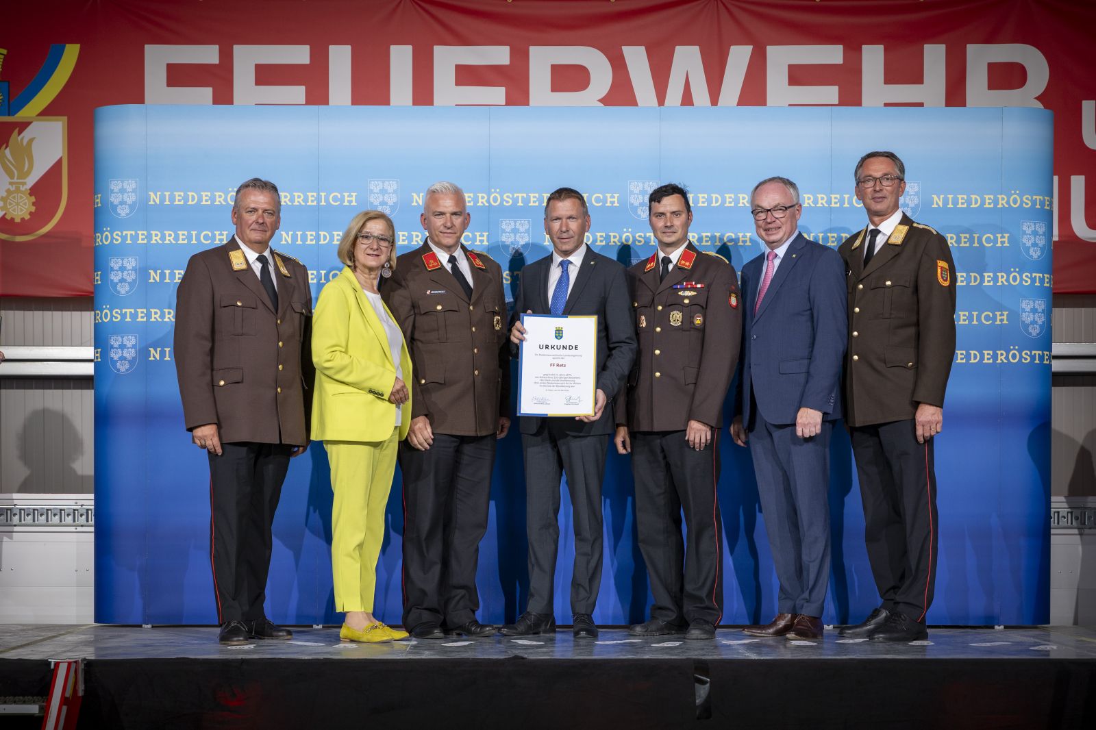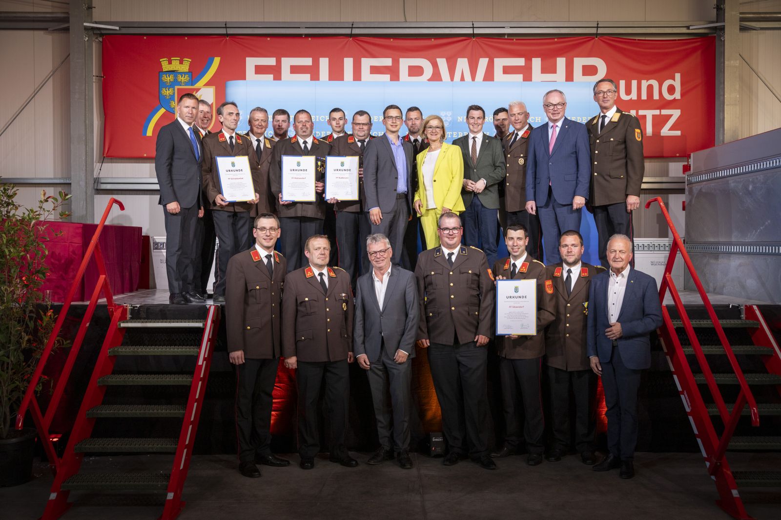 Aus dem Bezirk Hollabrunn wurden die Feuerwehren Retz, Sitzendorf, Schrattenthal, Schöngrabern, Radlbrunn und Waitzendorf für ihre herausragenden Leistungen und ihr unermüdliches Engagement über diese lange Zeit im Dienste der Gemeinschaft ausgezeichnet.