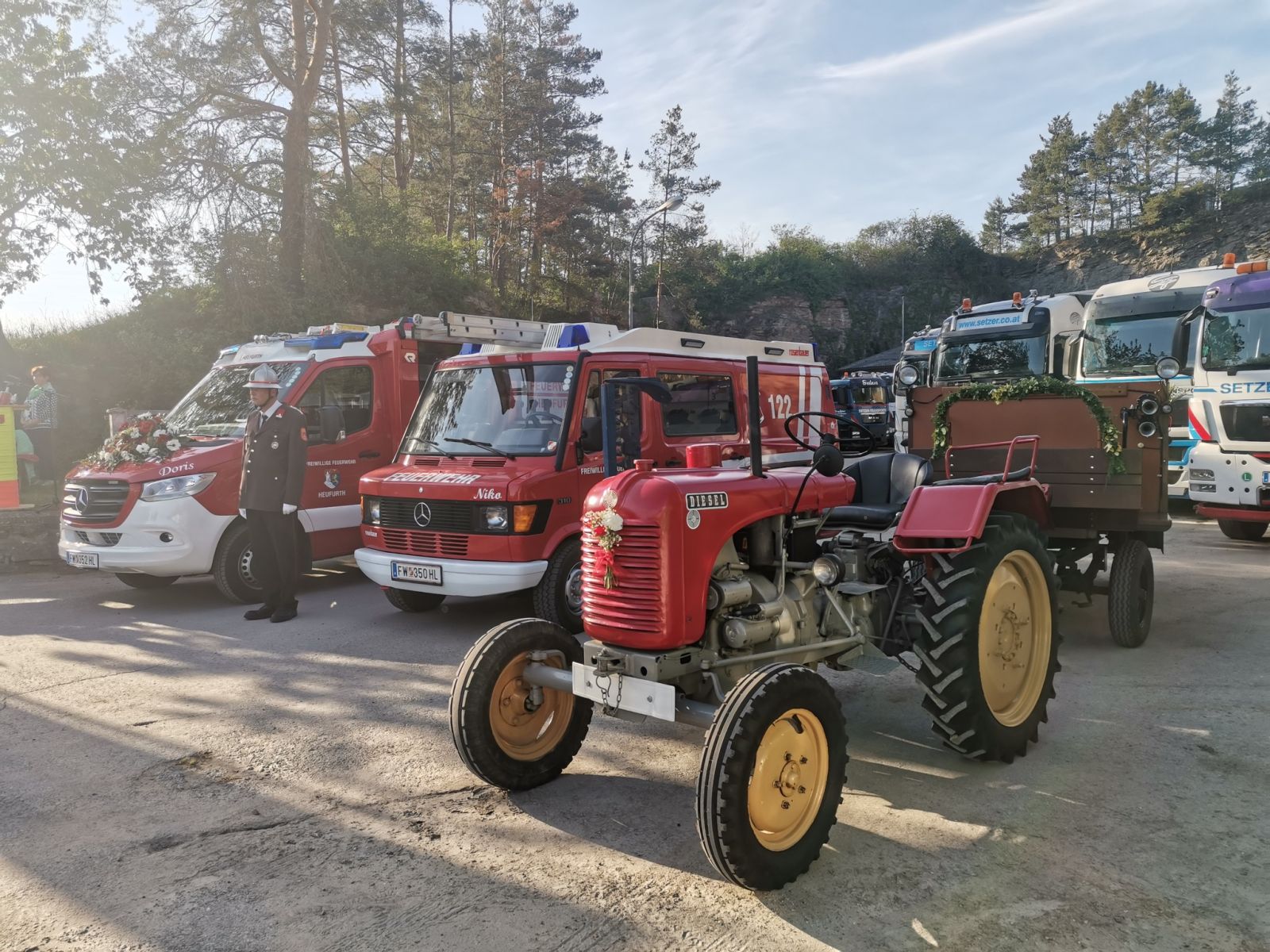 Die Fahrt durch Heufurth mit dem festlich, schön geschmückten Fahrzeuggespann endete direkt vor dem Festgelände. Wir sind stolz, dass wir die drei letztdienenden Feuerwehrfahrzeuge der FF Heufurth im Rahmen dieses Festaktes vorzeigen konnten. Dieses Bild hat Seltenheitswert und wird in die Geschichte unserer Feuerwehr eingehen. Unser KLF, dass wir 2023 außer Dienst stellten, ist jetzt bei der FF Hart-Aschendorf im Einsatz. Wir bedanken uns bei den Kameraden aus Hart-Aschendorf für die Teilnahme. Am Samstagabend gab es Unterhaltung mit dem Dämmerschoppen der Grenzlandkapelle Hardegg. Am Sonntag durften wir unsere Gäste beim Mittagstisch bewirten. Für musikalische Umrahmung sorgte die Gruppe Lumpenpack. Herzlichen Dank an alle Besucherinnen und Besucher und vor allem an die vielen Helferinnen und Helfer, die dieses Fest zu etwas Besonderem gemacht haben. Fotos: NÖN, Wolfgang Hanousek FF Heufurth
