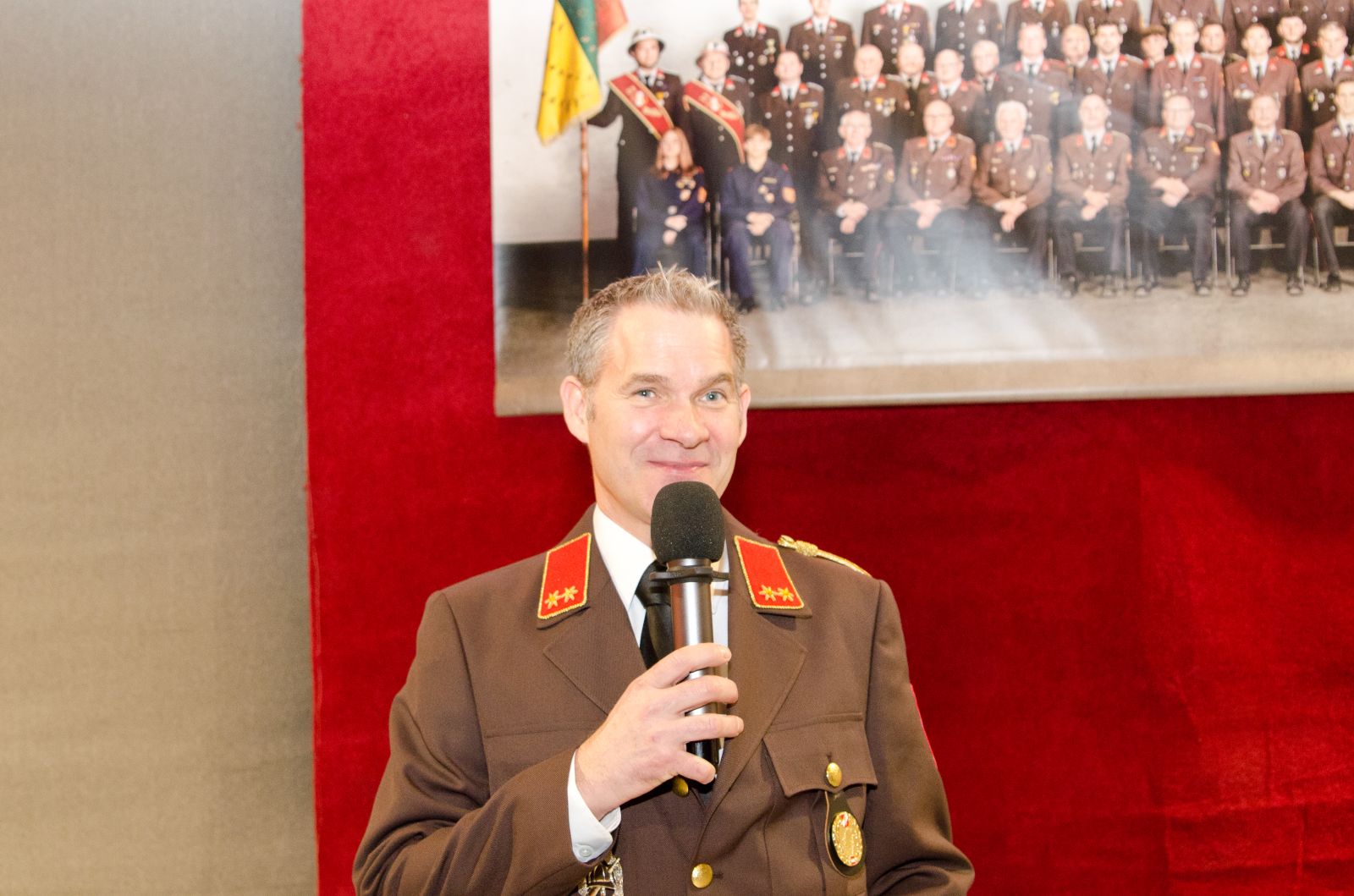 Neu-Kommandant Andreas Brickl begrüßte die Ehrengäste und bedankte sich ganz besonders bei den Helferinnen und Helfern in der Schank, der Bar, der Weinbar, den Kellnerinnen und Kellnern, sowie dem Küchenpersonal, die für das leibliche Wohl sorgten.