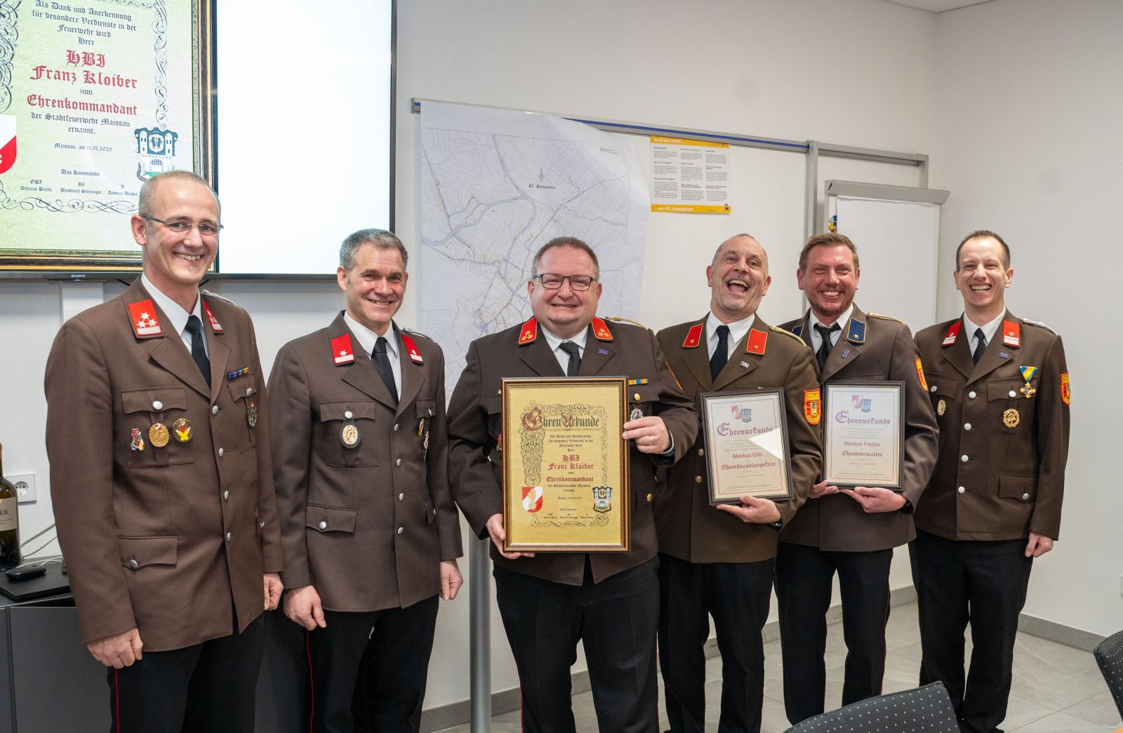 Das neugewählte Kommando bedankte sich bei der Mannschaft für das Vertrauen und ernannte BI Markus Gilli zum Ehrenbrandinspektor, V Markus Fiedler zum Ehrenverwalter sowie EHBI Franz Kloiber zum Ehrenkommandanten der Feuerwehr Maissau. Anschließend folgten die Ansprachen von Vizebürgermeisterin Michaela GIlli-Brickl, Abschnittsfeuerwehrkommandant BR Andreas Schwingl und Unterabschnittskommandant Mario Liewald.