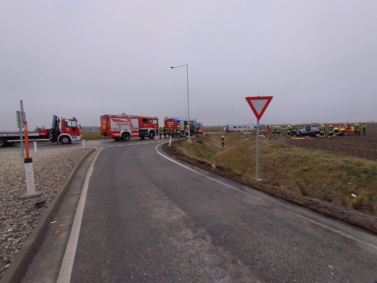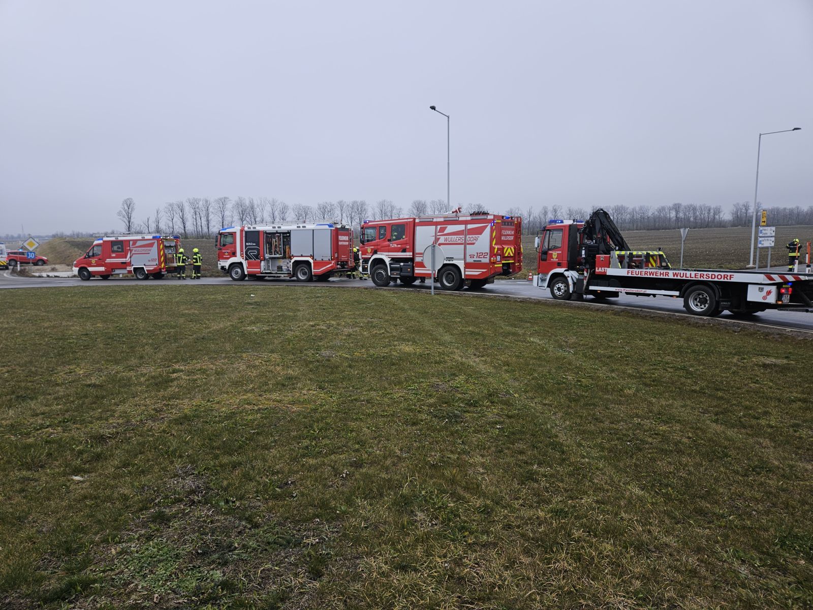 Kurz nach der Alarmierung rückte die Feuerwehren Wullersdorf mit 5 Fahrzeugen und 23 Einsatzkräften zum Unglücksort aus.