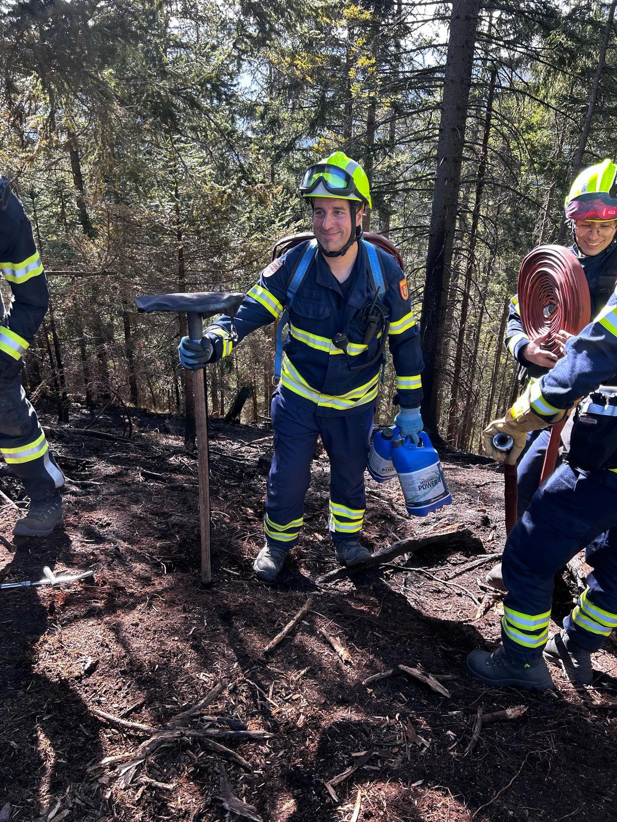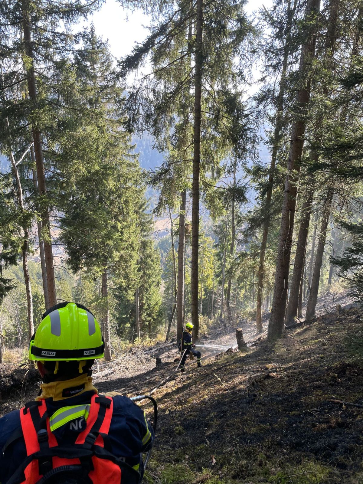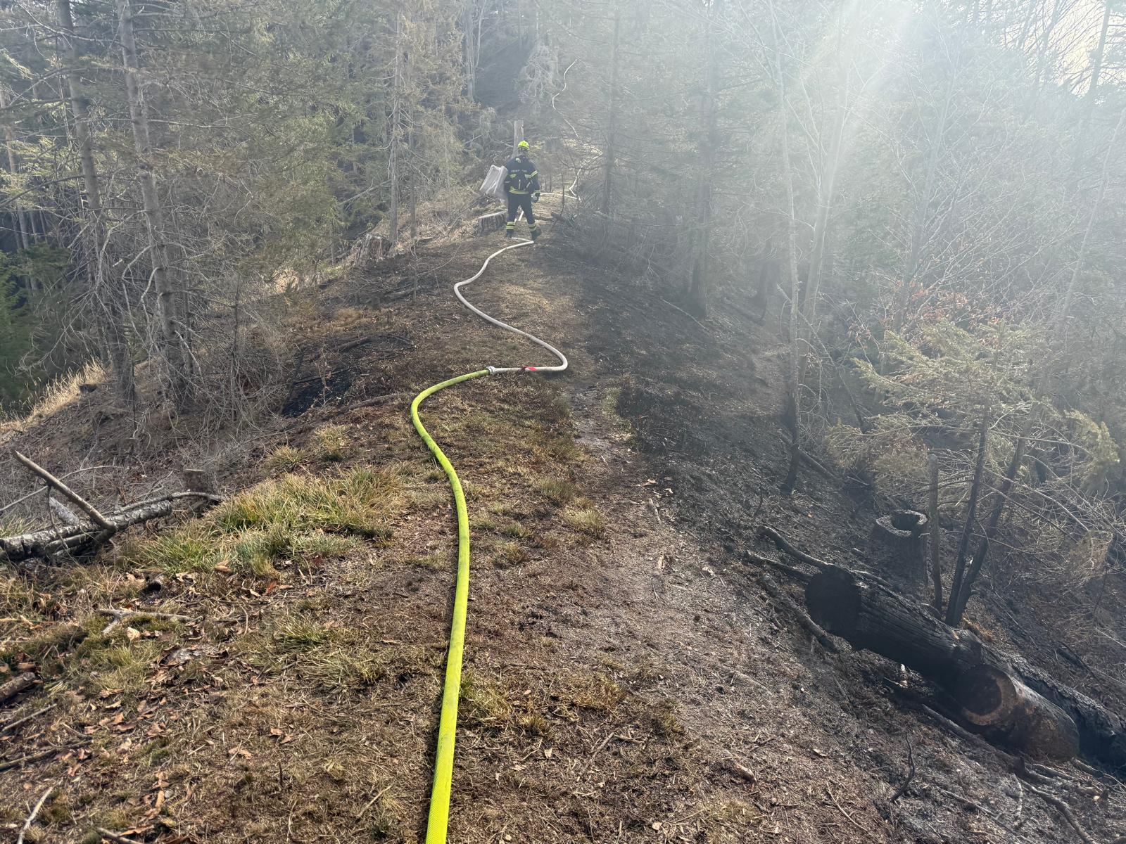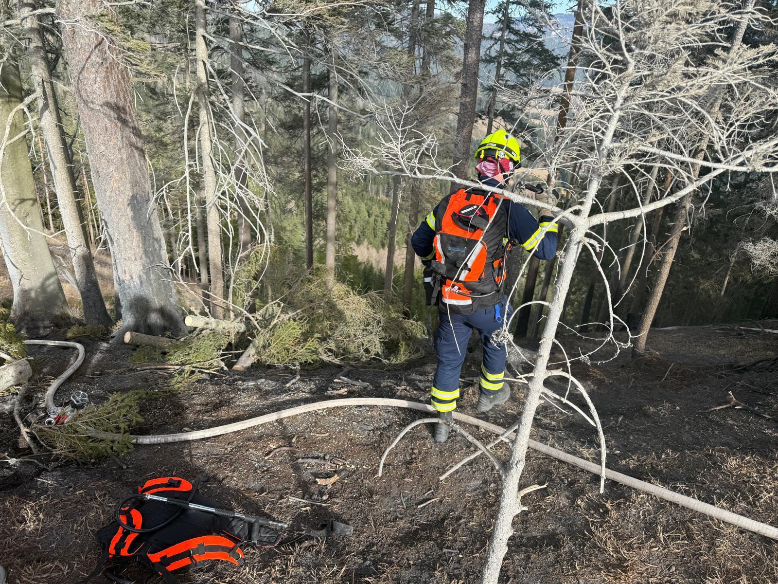 Hauptaugenmerk lag darin, Glutnester aufzuspüren und diese abzulöschen bzw. die allgemeine Brandbekämpfung auf rund 1.000m Seehöhe.