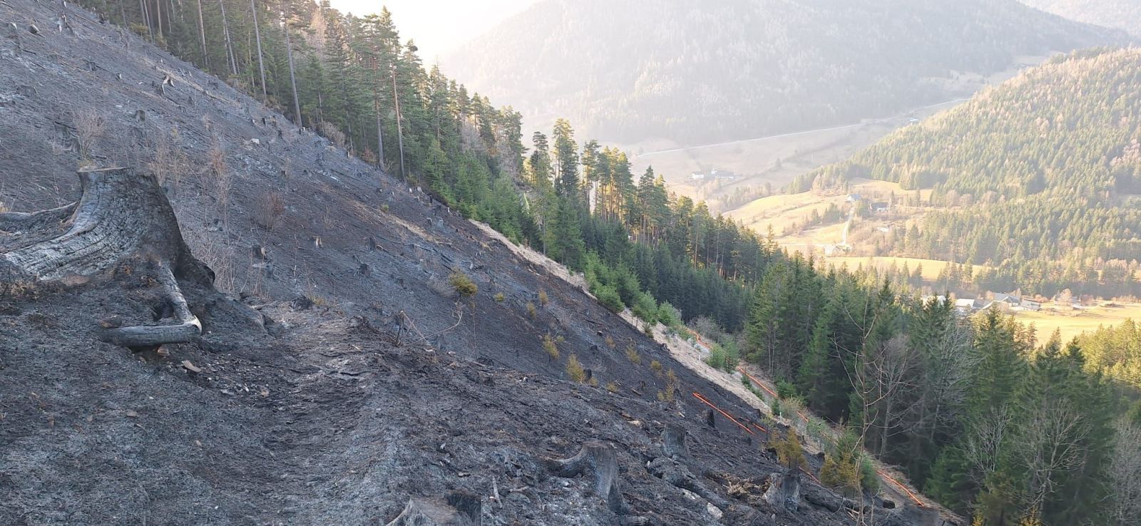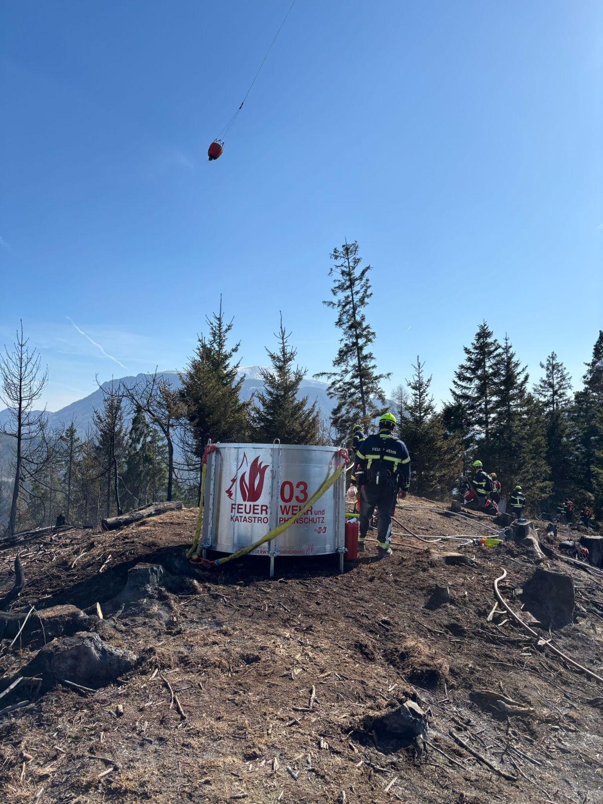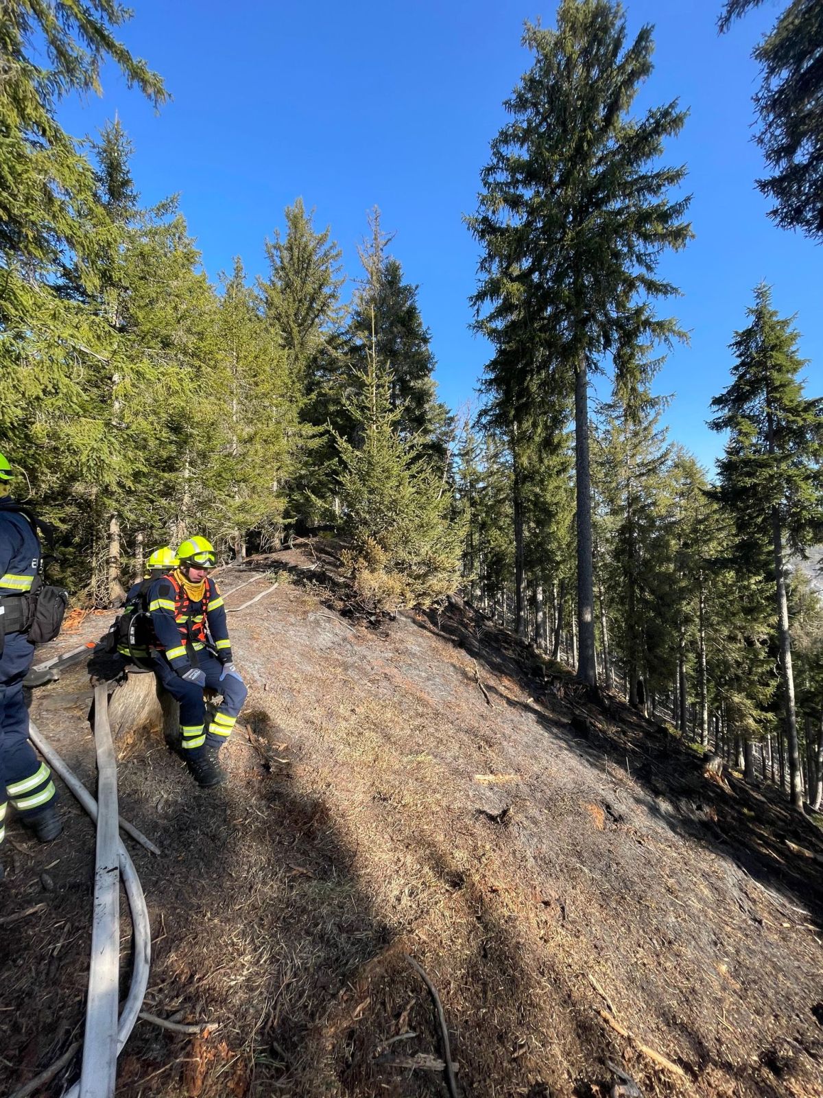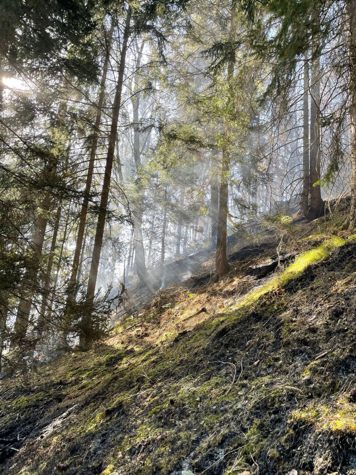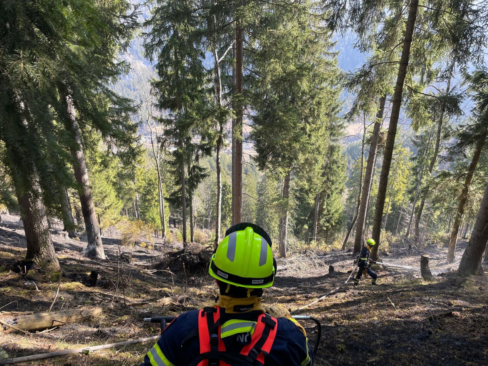 Hauptaugenmerk lag darin, Glutnester aufzuspüren und diese abzulöschen bzw. die allgemeine Brandbekämpfung auf rund 1.000m Seehöhe.