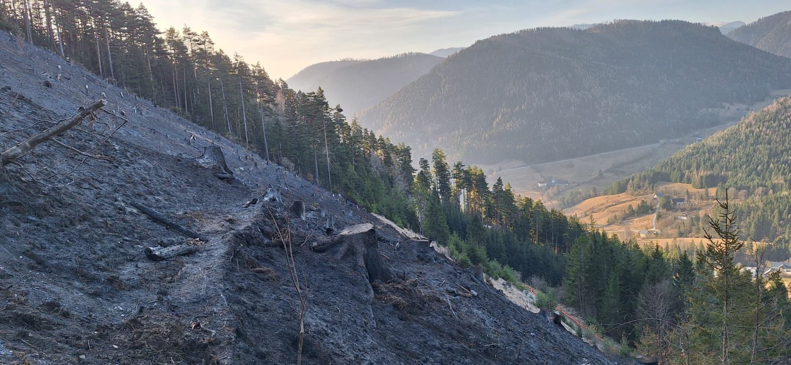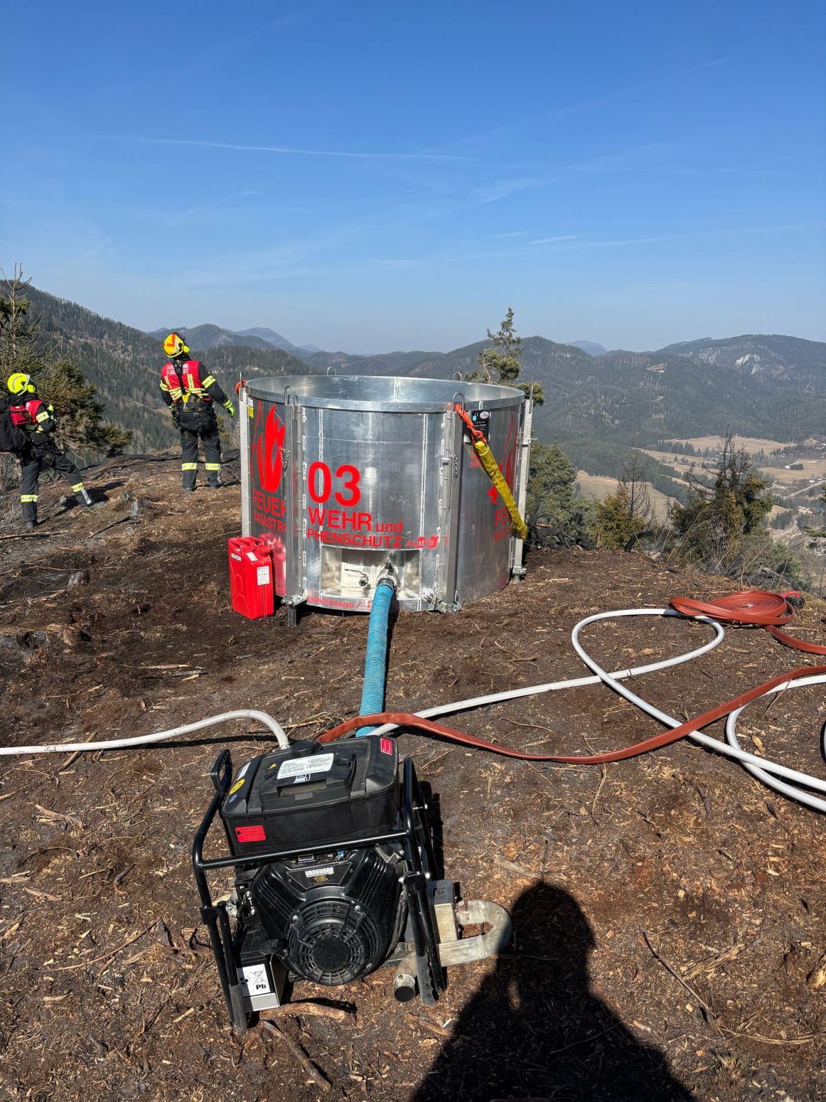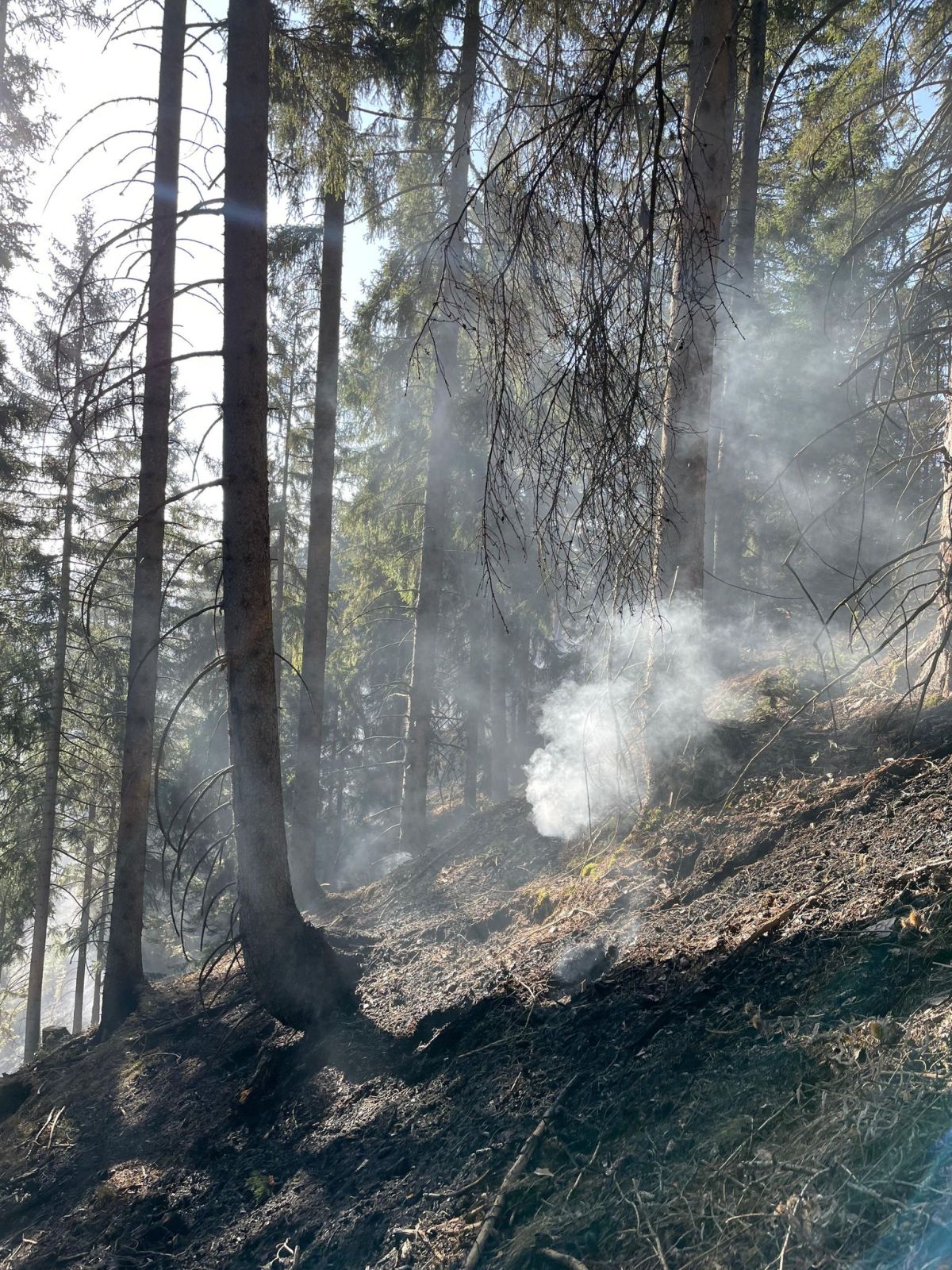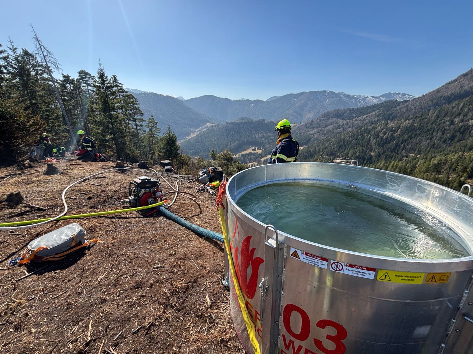 Hauptaugenmerk lag darin, Glutnester aufzuspüren und diese abzulöschen bzw. die allgemeine Brandbekämpfung auf rund 1.000m Seehöhe.