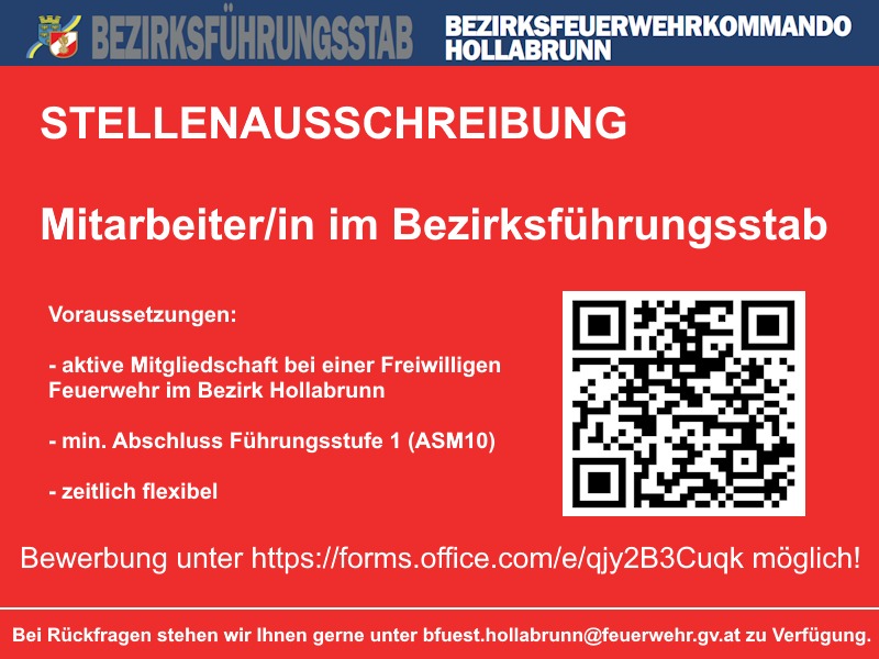 Bei Rückfragen stehen wir euch gerne unter bfuest.hollabrunn@feuerwehr.gv.at zur Verfügung.