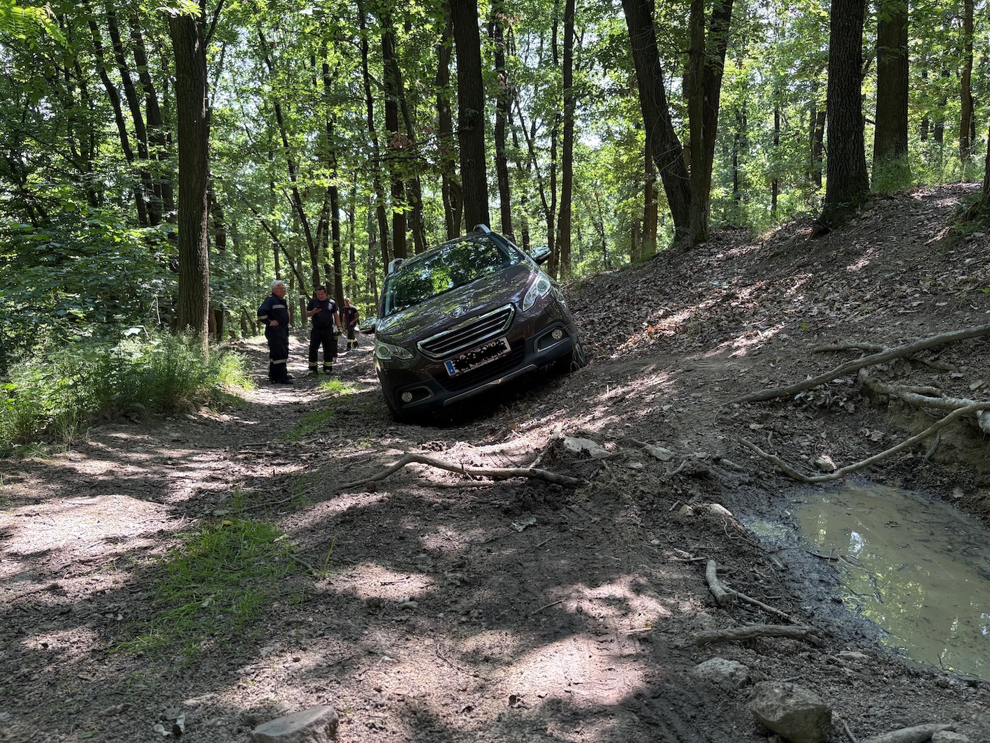 Das festgefahrene Fahrzeug wurde schließlich von mehreren Einsatzkräften aus dem weichen Waldboden befreit und konnte die Fahrt zurück auf befestigtes Terrain und die sichere Straße fortsetzen.