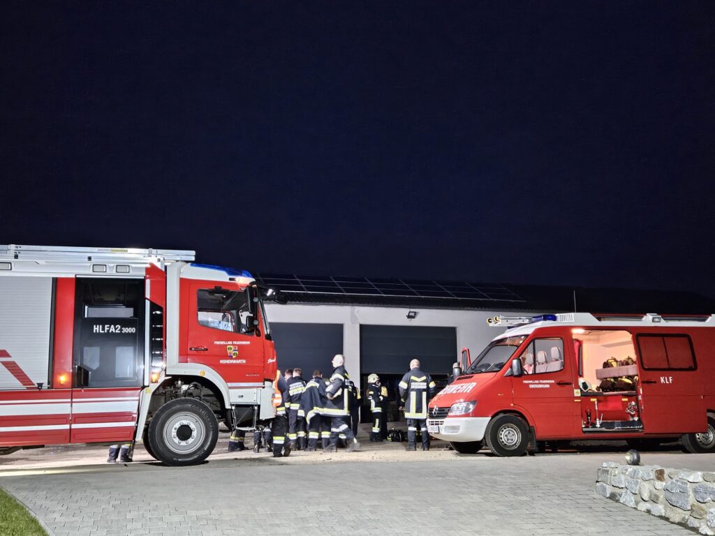 Am Samstag, dem 28.03.2026 wurde eine Unterabschnittsübung in Ebersbrunn mit dem Szenario „Schwellenbrand in einer Werkstatt“ durchgeführt. Übungsannahme war ein Brand mit mehreren eingeschlossenen Personen sowie Acetylenflaschen im Gebäude. Die Feuerwehr Ebersbrunn rettete eine Person, unser Atemschutztrupp rückte als zweiter Trupp mit Schlauch vor und konnte eine weitere Person sowie den Sauerstoff-Acetylen-Wagen bergen. Die Feuerwehr Mühlbach stellte den dritten Trupp. Zeitgleich wurde der Schutz der angrenzenden Gebäude sichergestellt. Die Wasserversorgung erfolgte durch die Feuerwehren Zemling und Bösendürnbach. Abschließend wurde das Objekt mit unserem Druckbelüfter rauchfrei gemacht. Das Übungsziel wurde erfolgreich erreicht.