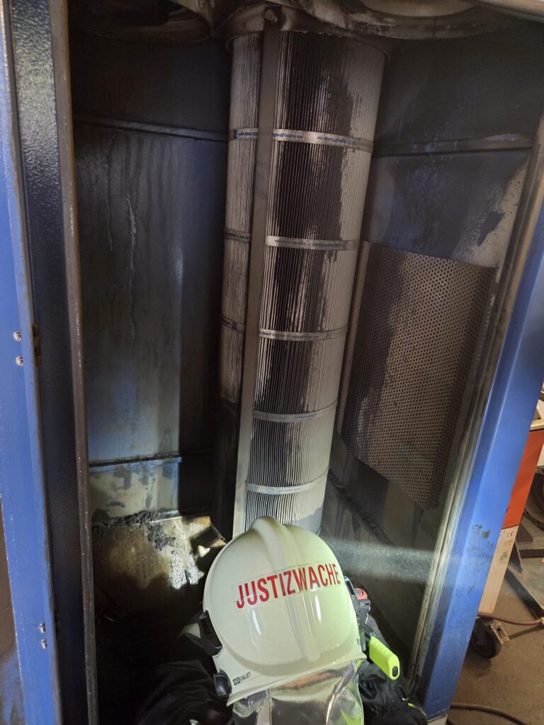 Gemeinsam mit den Beamten der JVA-Sonnberg wurde unter schwerem Atemschutz der Filter ausgebaut und ins Freie gebracht. Nach ca. eineinhalb Stunden konnten die Feuerwehren wieder ins Zeughaus einrücken.
