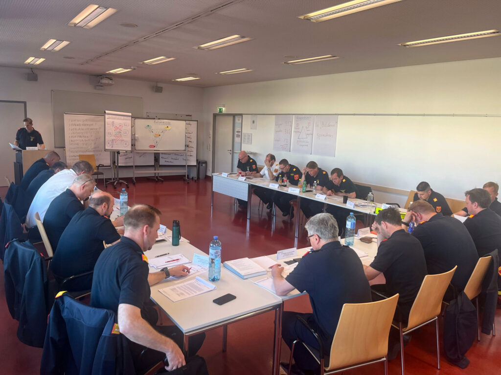Im Mittelpunkt stehen dabei weniger einsatztaktische Details, sondern vor allem Themen der Menschenführung, Organisation und Entscheidungsfindung. Behandelt werden unter anderem Führungsverhalten, Kommunikation, Öffentlichkeitsarbeit, Zusammenarbeit in größeren Führungsstrukturen sowie strategische Abläufe im Feuerwehrwesen. Auch rechtliche und organisatorische Rahmenbedingungen spielen eine wesentliche Rolle.