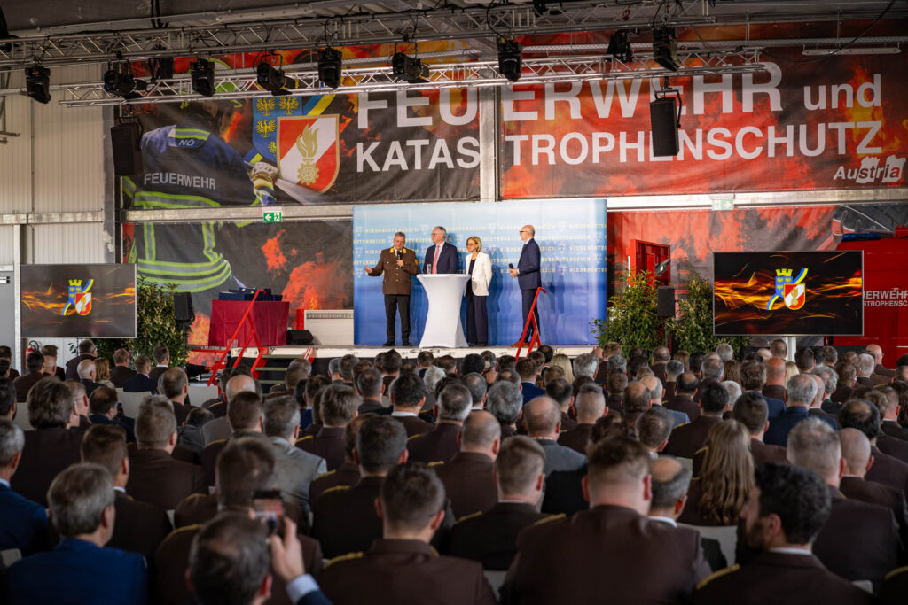 Am 23. April 2026 fand im neuen Containerterminal des NÖ Landesfeuerwehrverbandes ein Festakt statt, bei dem zahlreiche Freiwillige Feuerwehren für ihr langjähriges Engagement und ihren unermüdlichen Einsatz geehrt wurden.