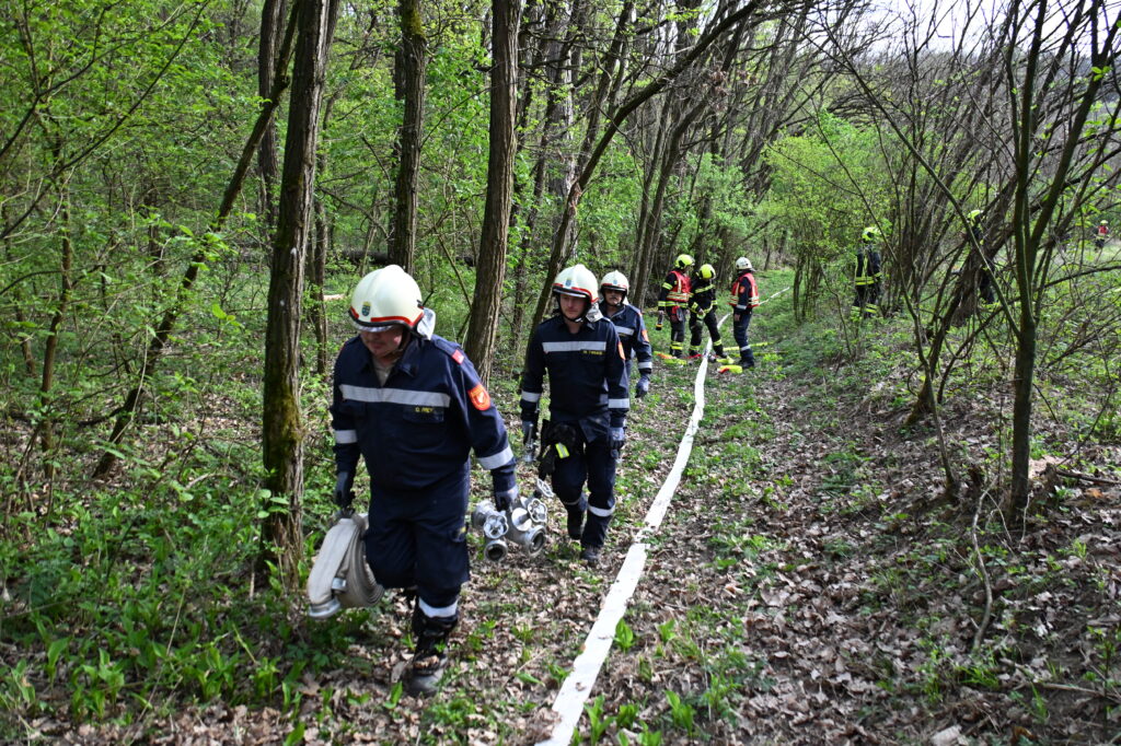 Ein Waldbrand im Einsatzgebiet von Kiblitz. Es wurde eine Riegelstellung aufgebaut, um eine Ausbreitung zu verhindern. Dabei wurde ein Pendelverkehr mit Tanklöschfahrzeugen gemacht.