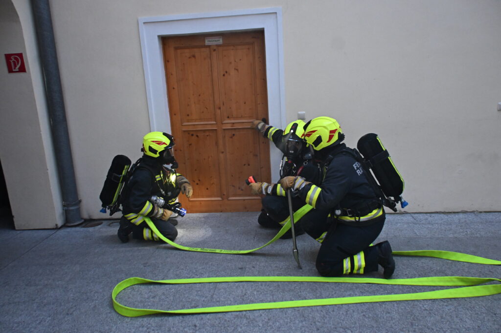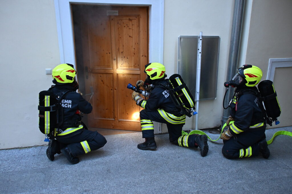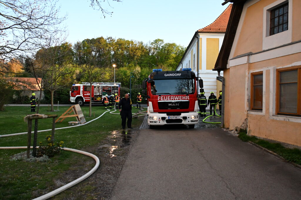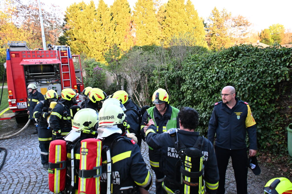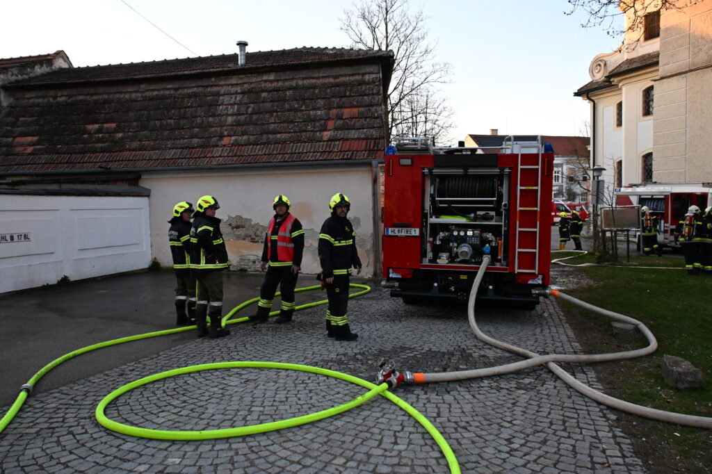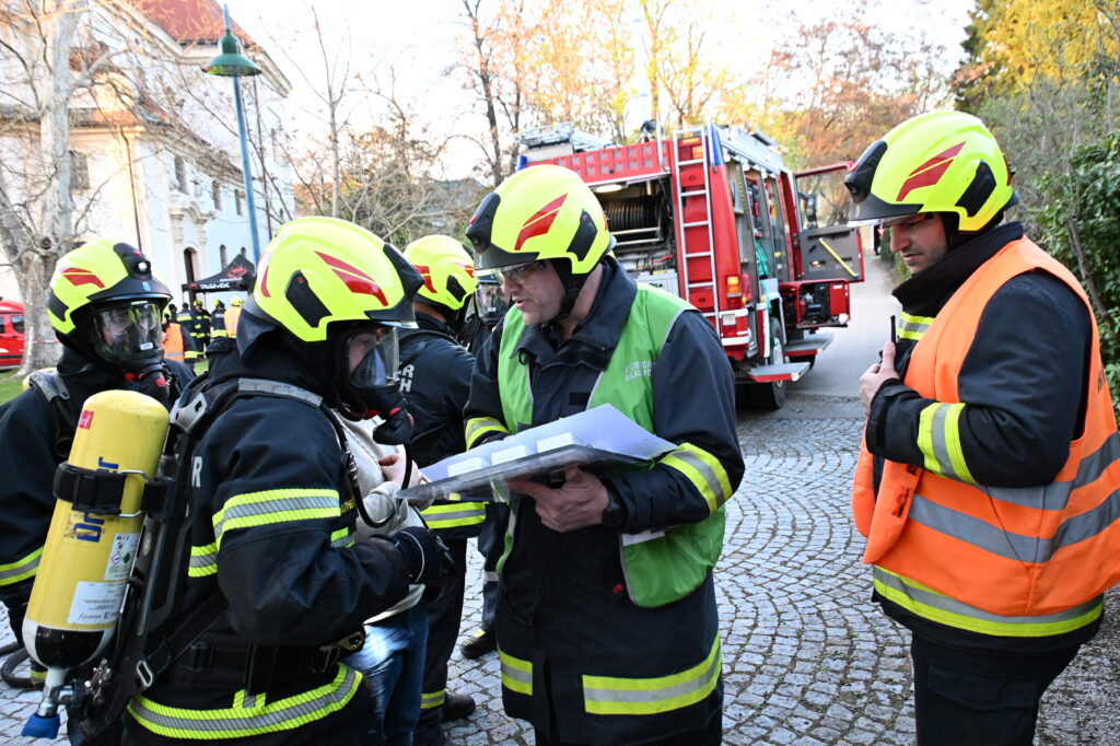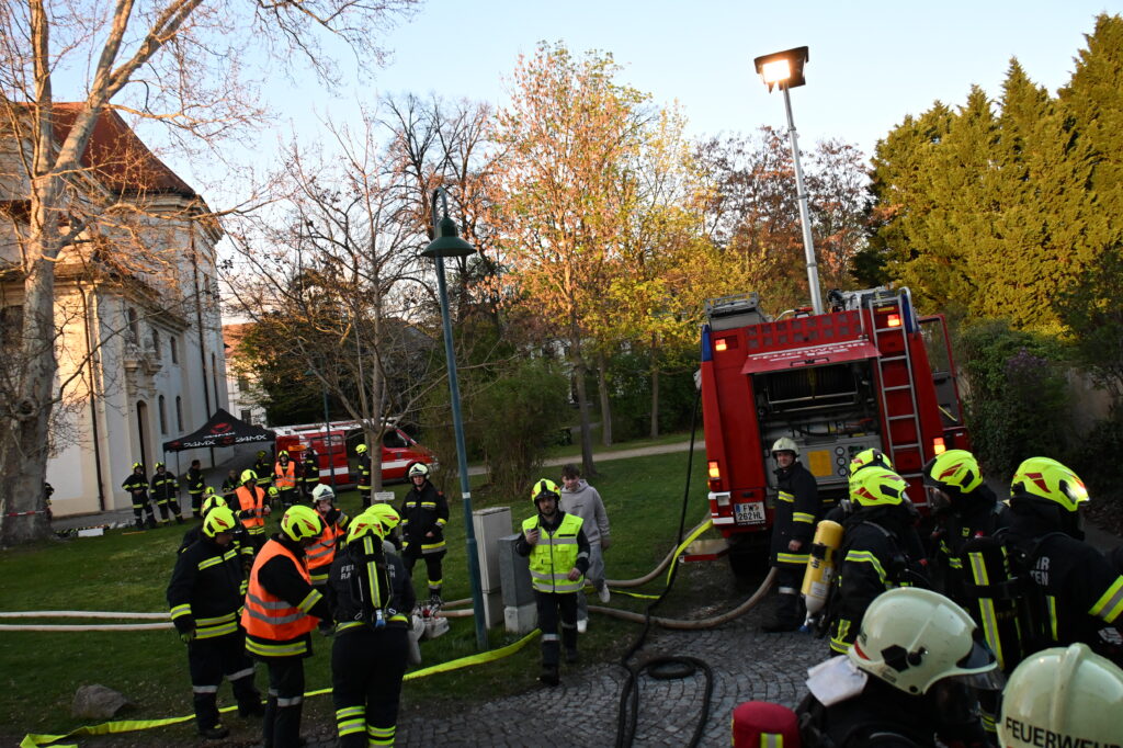 Die Alarmierung war: „B3 – Rauchentwicklung im Pfarrhof und mehrere vermisste Personen“.
