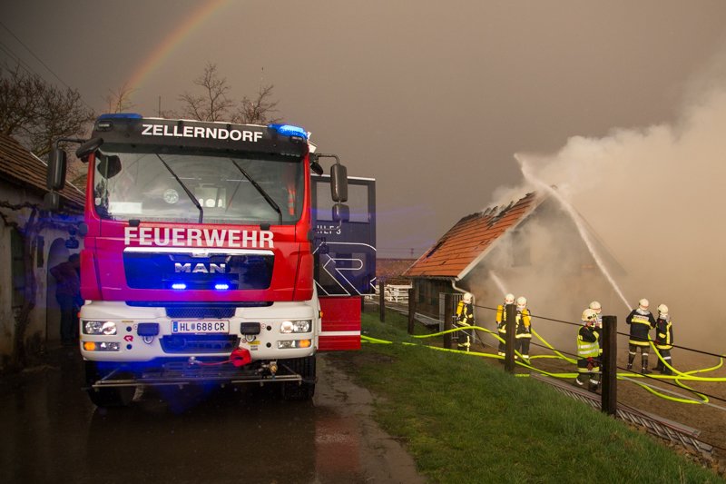 Durch einen Blitzschlag wurde am 11.04. um 18:15 ein Pferdestall in Zellerndorf schlagartig in Brand gesetzt. Der Besitzer wurde durch
