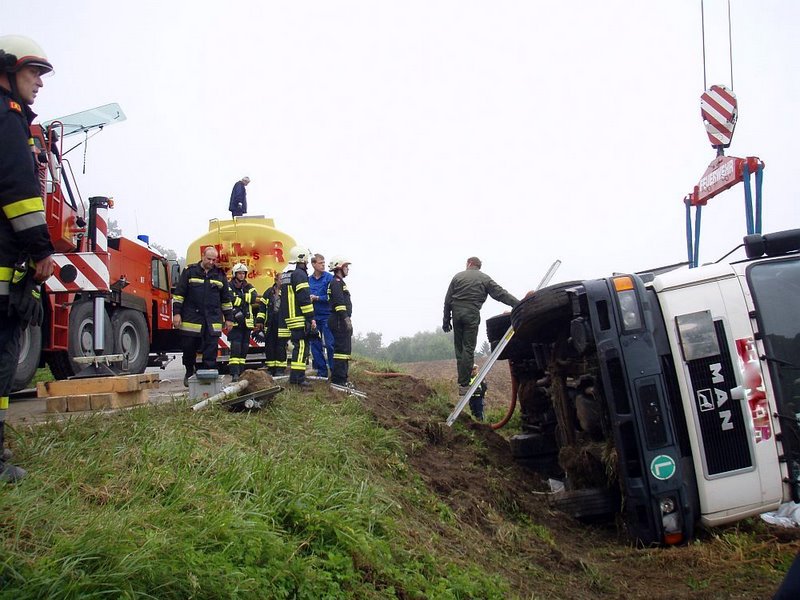 Die Freiwillige Feuerwehr der Stadt Hollabrunn wurde am 08.09.2010 zu einem Tankwagenunfall, Alarmstufe 3, zwischen Tautendorf und Gars am Kamp