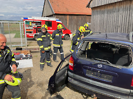 Ausbildungsprüfung Technischer Einsatz der FF Obergrub „Zusammenarbeit über die Bezirksgrenze hinweg“ – So lautete das Motto der FF Obergrub. Gemeinsam mit