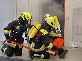 Nach dem 1. Teil der Atemschutz-Fortbildung zwei Wochen zuvor, absolvierten die Teilnehmer am 14.10.2023 den zweiten Teil der Ausbildung im