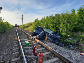 Alarmierung zu Menschenrettung nach Zusammenstoß zwischen Zug und PKW. Während des Zusammentreffens für die geplante Besichtigung der neuen Raststätten auf