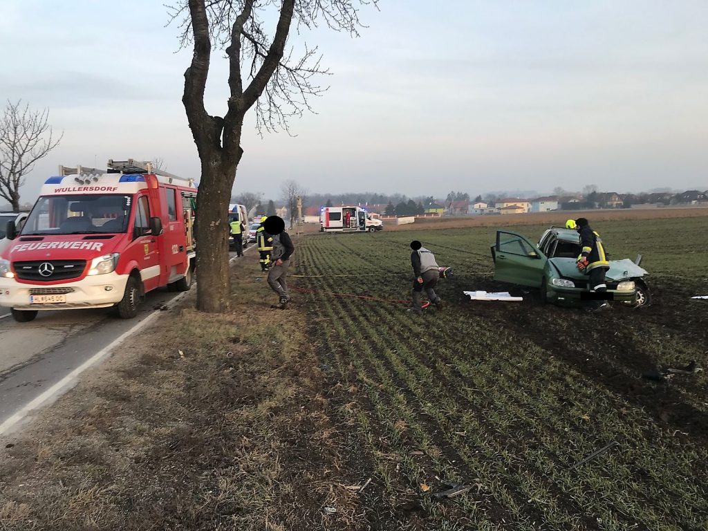 Am 07. Februar um 16:25 Uhr wurde die FF Wullersdorf zu einem Verkehrsunfall mit dem Stichwort PKW gegen Baum zwischen